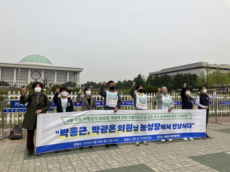 4월 국회 차별금지/평등법 제정에 관한 더불어민주당 입장 요구 공개서한 발표