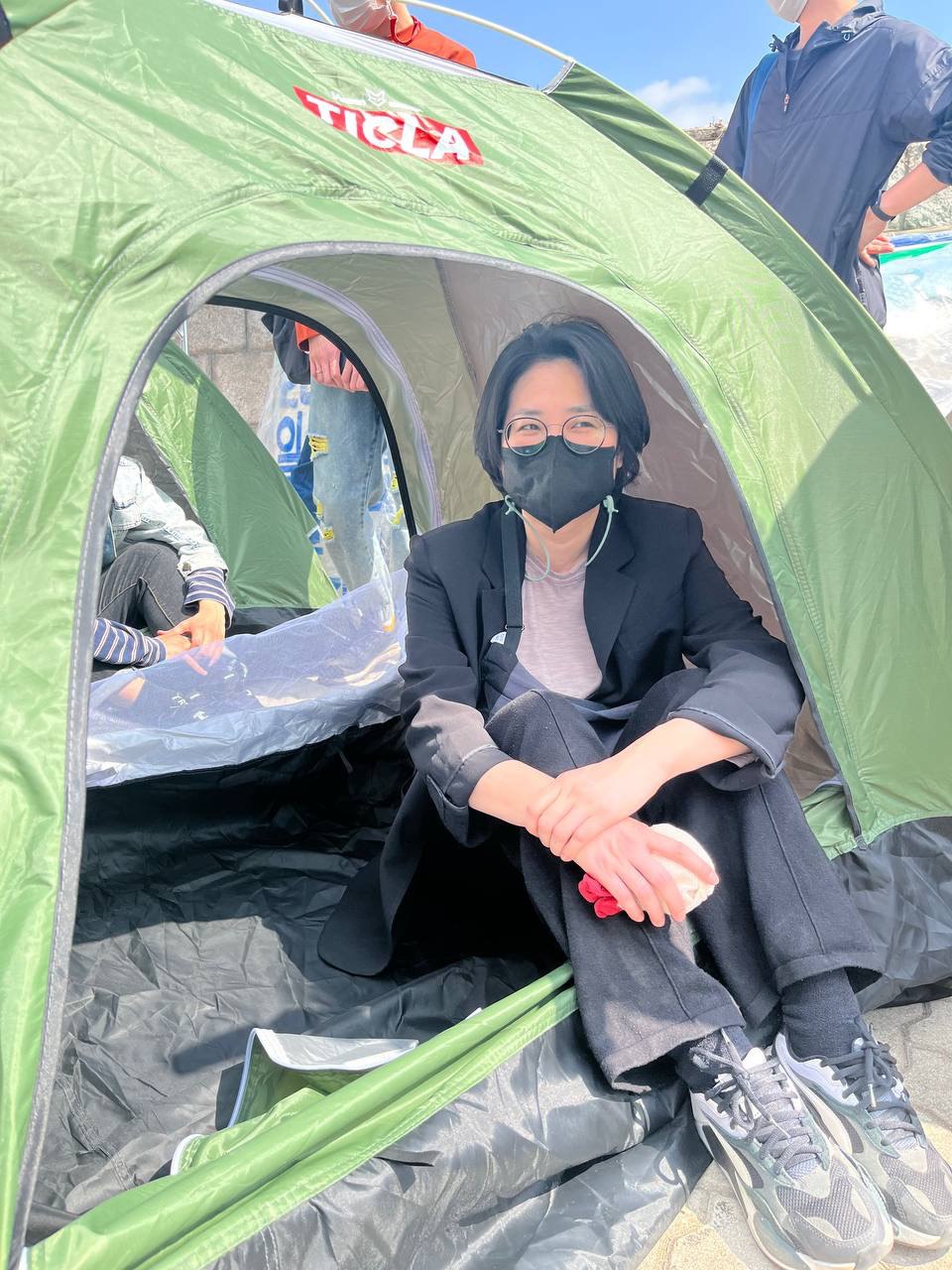 그러나 평등텐트촌을 치는 것부터 난항을 겪었습니다. 국회가 천막 반입을 막는 바람에 마찰이 생긴것인데요. 최대한 동요하지 않고 차별금지법이 조속히 만들어져야 하는 이유를 설명하는 시간이 이어졌습니다. 협의가 진행되고 차별금지법을 대표발의한 정의당 장혜영 의원도 같이 이야기를 보태주어 다행히 천막이 설치될 수 있었습니다.
