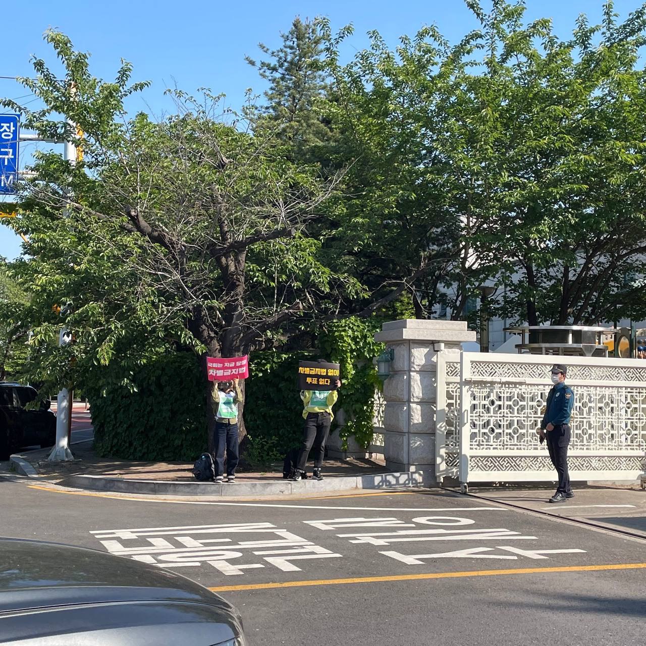 21대 국회의원들이 한 자리에 모이는 국회 본회의와 더불어민주당 의원들이 한 자리에 모이는 의원총회를 앞두고 '차별금지법 제정하라'는 피켓팅을 국회 앞 정문에서 진행하였습니다. 우리의 간절한 요구, 우리의 분노가 담긴 요구가 전해지기 바라며.