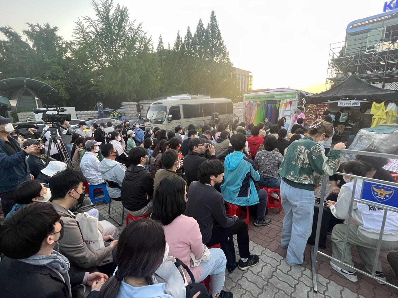 5월 10일 국회에서 열리는 윤석열 대통령 취임식의 앞두고 농성장을 정리해달라는 요청이 들어왔습니다. 농성장이 강제로 철거될 수도 있기에, 많은 이들이 농성장을 지키기 위해 모였습니다. 상담소 활동가들도 밤새 몸으로 버틸 각오를 하며 짐을 꾸려 출근했습니다. 차별금지법 제정을 요구하며 차린 농성장인데 움직일 생각 없는 국회를 그대로 두고 대통령 취임식을 이유로 이 자리를 떠날 수는 없는 것이었습니다. 매일 같이 다양한 사람들과 활동 영역의 의제가 이곳에 모였고 차별금지법과 만났고 정치적 책임과 응답을 요구하는 외침으로 드러나는 곳이었습니다. 다행히 수많은 사람들이 농성장을 지키겠다는 결의를 보여준 덕에, 강제 철거 없이 취임식을 맞이할 수 있었습니다. 시민들의 힘으로 농성장을 지킨 이 날 밤, 차별금지법 제정의 역사는 국회 안에서가 아니라 우리 스스로 만들어가고 있다는 미류님의 발언을 오랫동안 잊지 못할 것 같습니다.