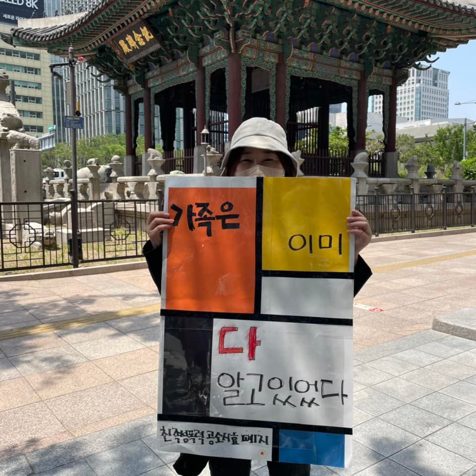 이어서 5월 28일(토) 오후 12시 광화문사거리 앞에서 친족성폭력 공소시효 폐지를 위한 매마토(매월 마지막 토요일) 시위에 한국성폭력상담소 활동가들도 함께했습니다. 이번 매마토 시위는 가정의달을 맞아 가족보다 나은 친구와 함께 하는 컨셉으로 진행되었고, '가족에게 하고 싶은 말'을 피켓으로 만들어 들었어요. 매마토 시위는 매월 마지막 토요일에 진행되며, 누구나 미리 만든 피켓을 가지고 12시 광화문사거리(광화문역 4번 출구 인근, 고종즉위40년칭경기념비 앞)로 모이면 자유롭게 참여할 수 있습니다. 앞으로도 많은 관심과 연대를 바랍니다.
