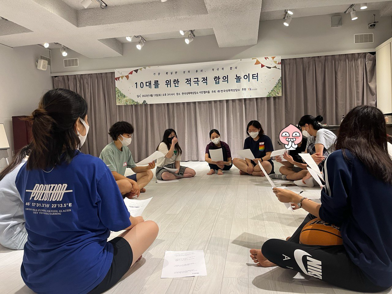지난 8월 13일 오후 3시-6시, 한국성폭력상담소 이안젤라홀에서 가장 확실한 성적 동의, 적극적 합의 맞춤형 워크숍 ① <10대를 위한 적극적 합의 놀이터>를 진행했습니다. 총 4회에 걸쳐 진행할 예정인 맞춤형 워크숍의 첫 번째 순서였어요!