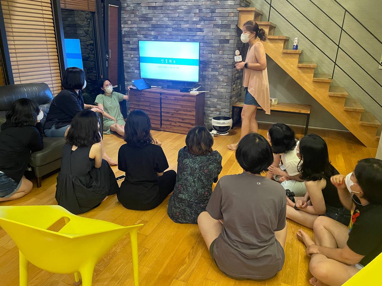 먼저 란 활동가가 사회자로 나서, 90년대 힛-트송을 골라골라 문제를 냈습니다. 산울림과 송골매의 7080 곡들과 2000년대 KPOP과 인디음악을 좋아하는 제게, 90년대의 공백은 너무 컸습니다. 마로니에의 ‘칵테일 사랑’, 잼의 ‘난 멈추지 않는다’, 베이비복스의 ‘Killer’, ‘조성모의 ‘To Heaven’와 같은 명곡들이 줄줄이 나오는 와중에 저는 정말 한 문제도! 맞추지 못했습니다. 귀에 익은 후렴이 나올 때 그저 어깨를 들썩일 뿐이었지요.