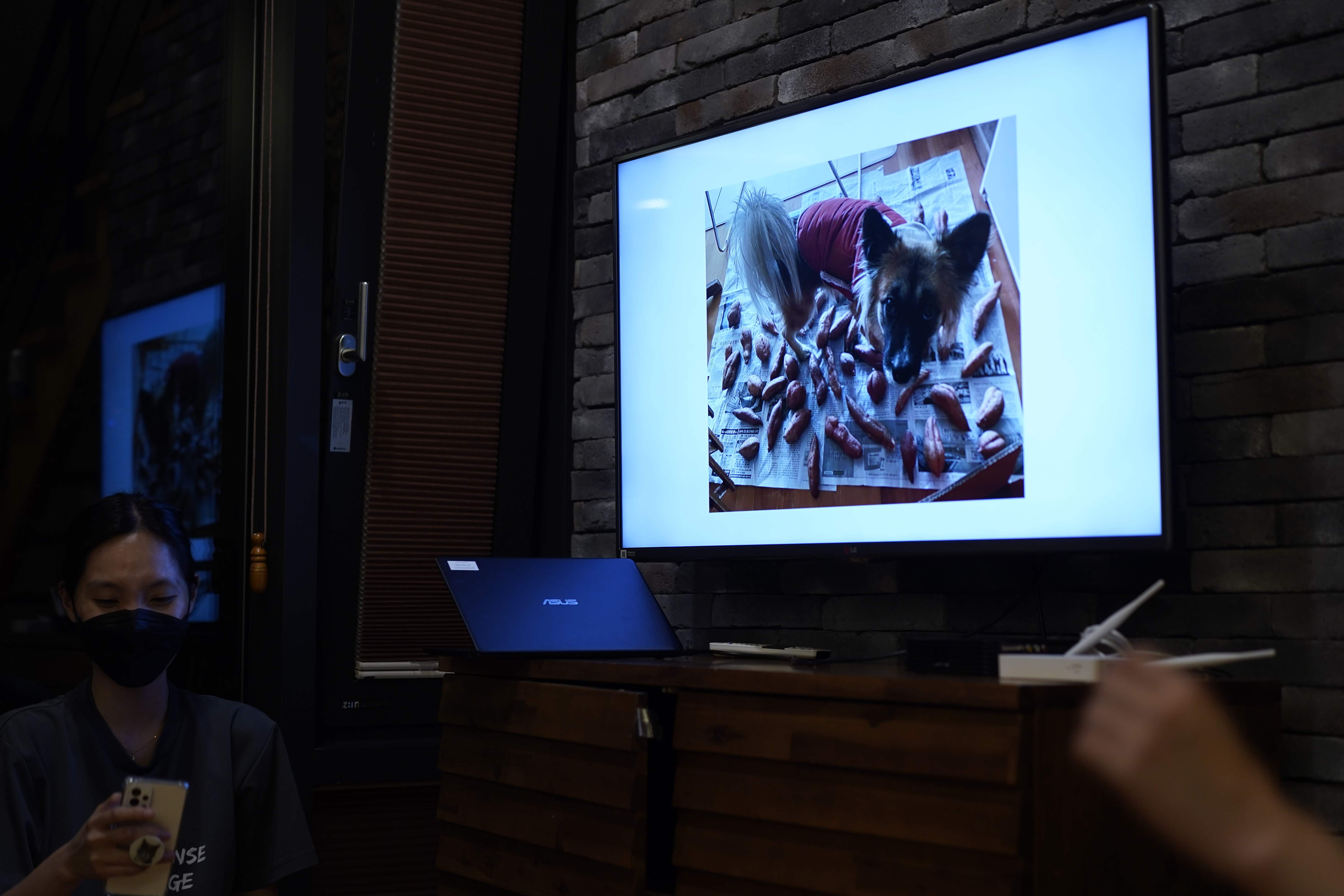 다시 본론으로 돌아오겠습니다. 감이 활동가의 사회로 문을 연 프로그램의 첫 번째 순서는 인물 퀴-즈였습니다! 모니터 화면에 제시되는 사진을 보고 이름을 맞추면 되는 거였어요. 작가 버지니아 울프, 흘러내린 머리카락으로 얼굴이 가려진 오매, 상담소의 이사장 이명숙 변호사, 퀴어아티스트 이반지하 등 다양한 분야의 여성 인물이 등장했습니다. 난이도가 어려운 문제도 많았지만 단연 가장 논란에 섰던 문제는, 신아 활동가의 반려견 ‘도레’였습니다. 사진에 고구마가 너무 많아서, ‘도레와 고구마’가 정답이 되어야 하는 것 아니냐는 의견이 이었지요. 결국 정답으로 인정된 것은 ‘도레’였지만, 여러분의 생각은 어떤지 궁금하네요.