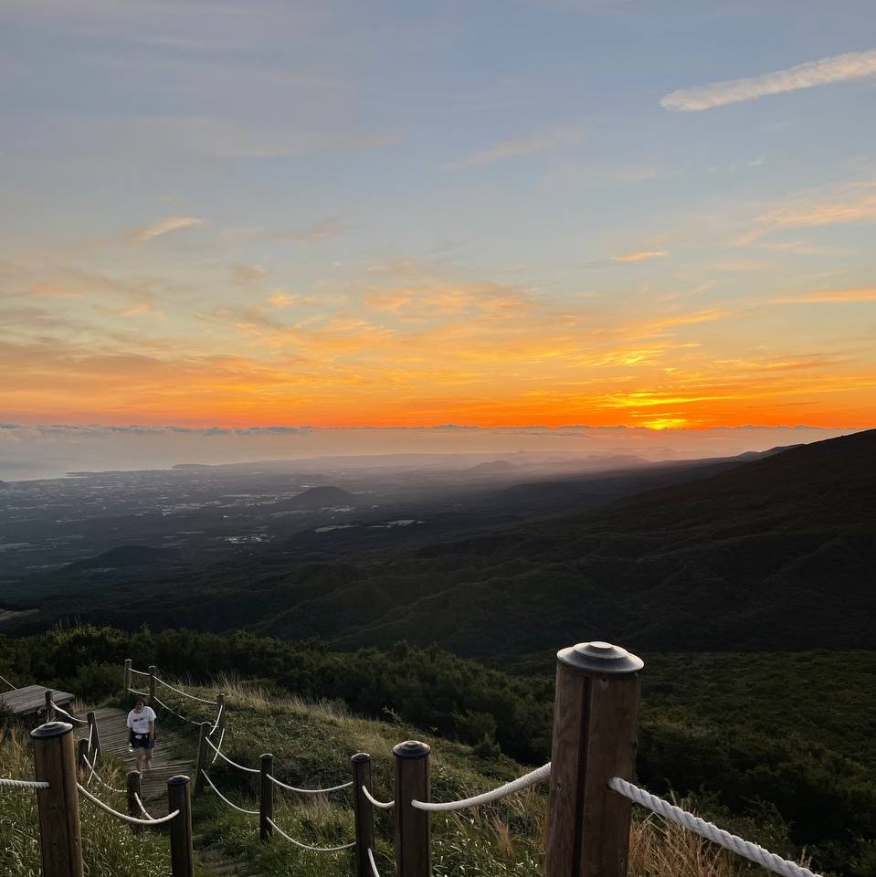 둘째 날 아침이 밝았습니다. 저는 아주 늘어지게 잠을 자느라 열한 시가 다 되어서야 일어났는데, 어젯밤 급 결성된 ‘일출 탐험대’는 새벽에 일어나 떠오르는 해를 보러 다녀왔다고 해요. 무려 새벽 네 시, 고요하고 쌀쌀한 시간에 일어나 한라산 어승생악을 올랐습니다. 앞이 캄캄해서 조심조심 휴대폰 플래쉬로 길을 비추었다고 해요. 끝내 도착한 정상에서 해돋이를 마주했을 때 얼마나 상쾌했을지 상상도 되지 않는데요. 마침 하늘도 아주 맑았다는데, 사진으로도 그 절경이 느껴지지 않나요?