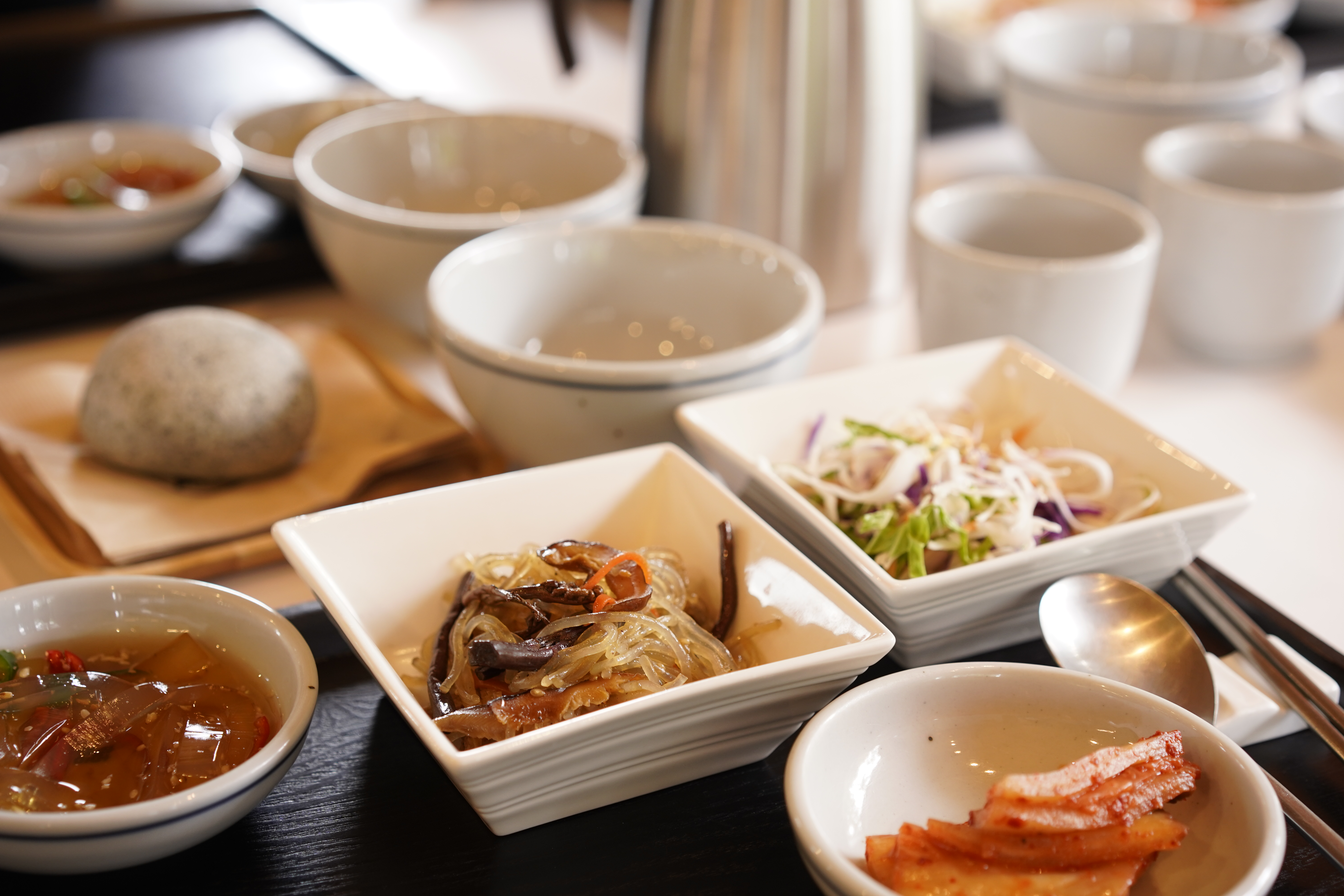 한 시간 여의 비행으로 제주에 도착하자마자 렌터카를 몰고 식당에 갔습니다. 편백숲 트레킹을 예약해 둔 터라 기력 충전이 필요했어요. 들깨수제비와 비빔밥 등 정갈하고 따뜻한 한끼로 든든히 배를 채우고, ‘머체왓숲길’로 향했습니다.