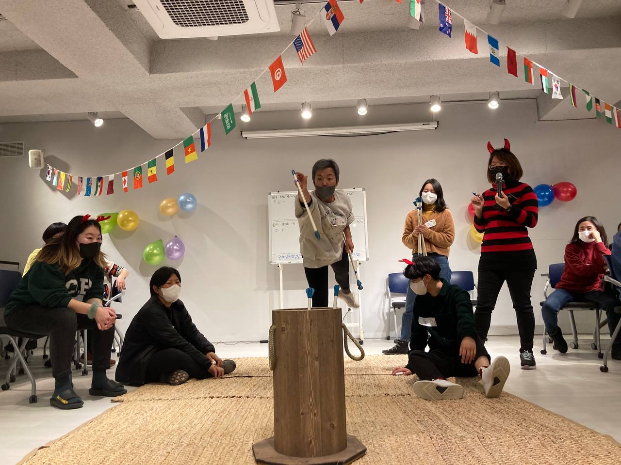 다음 게임은 투호 던지기! 도대체 상담소에 투호랑 멍석이 왜 있느냐는 질문도 받았습니다. 하지만 이 날을 위해 빌렸다는 사실. 투호 던지기는 정신력+멘탈이 중요한 게임입니다(저만의 생각) 모두가 시끄럽게 응원하고 모두가 날 주목하고 있는 가운데 흔들리지 않고 집중해서 골인하는게 아주 중요하다고요!