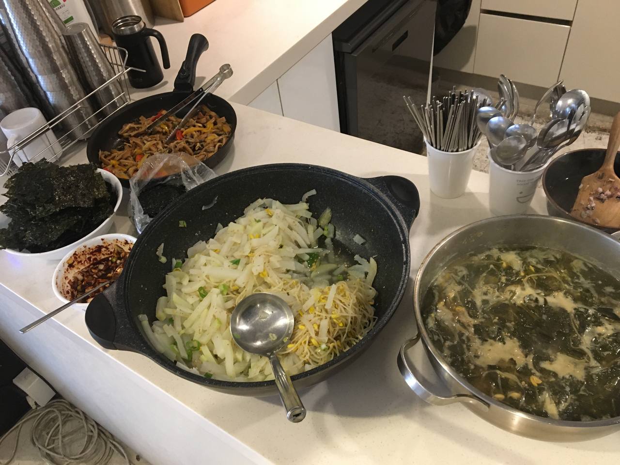 先に昼食を食べることにしたんですが。 特別なことがなければ、自分で料理して一緒に食べる相談所の昼休みをAさんと分かち合いたかったです。 合井洞の素敵なお店で外食をしても良かったのでしょうが、相談所の自然な姿をお見せしたかったんです。 ちょうど腕の良いパラン活動家が暖かいおうちごはんを作ってくれて、ささやかな会話とともにぎこちなさを解くことができました。