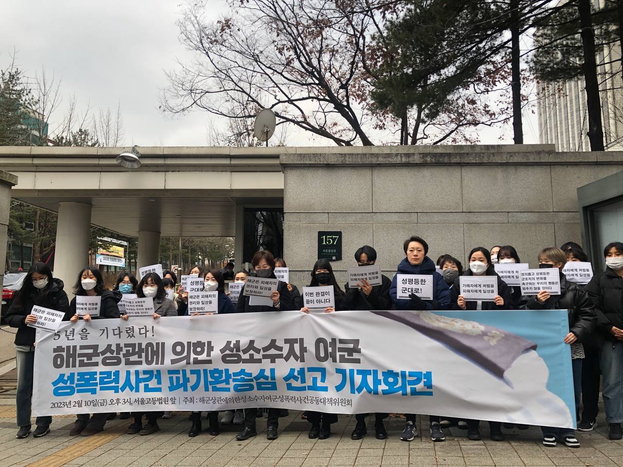 "서울고등법원의 유죄 판결, 해군의 성평등한 변화는 이제 시작이다."라며, 우리 공대위는 이번 사건과 같이 피해자가 오랜 시간 고통과 부정의한 법적 절차에 갇히지 일이 발생하지 않도록, 정의롭고 성평등한 군대 문화를 위한 반성폭력 운동은 멈추지 않을 것이라고 밝혔습니다.