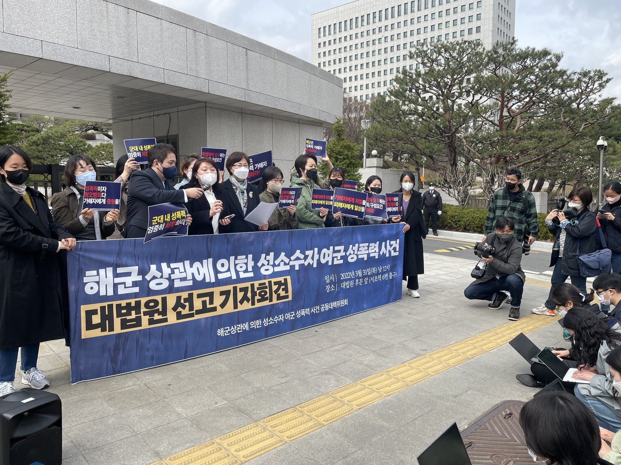 2022년 3월 31일 3년 만에 열린 대법원 선고에서 가해자 A에 대해서는 군사법원이 내린 판결 그대로 무죄 확정하였고, 가해자 B에 대해서는 무죄 판결을 뒤집고 유죄 취지로 사건을 파기환송하였습니다. 이에 대법원의 반쪽짜리 판결에 규탄하는 기자회견을 개최하였습니다.