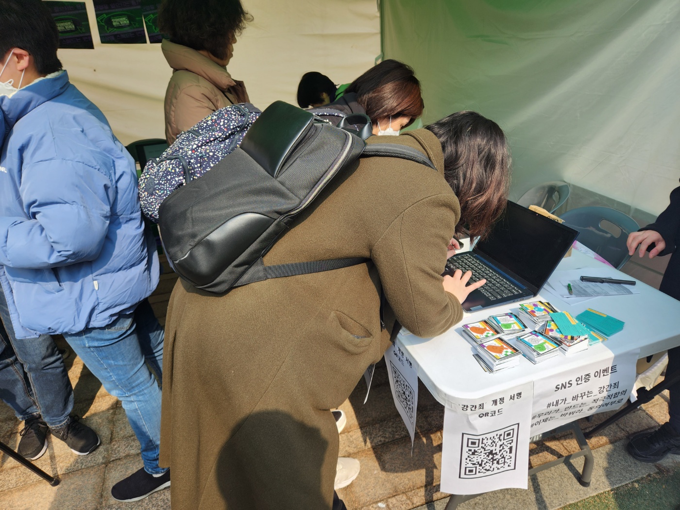 현 강간죄의 문제를 드러내는 표지와 형법 제297조 강간죄를 둘러싼 왜곡과 오해를 하나하나 따져보는 Q&A, 관련 사이트 안내 등이 담긴 홍보물을 나누어드렸습니다. 그리고 지금의 강간죄 개정 이대로 괜찮지 않다는 많은 분들의 의견을 입법자들에게 전달하는 강간죄 개정 서명이 있었습니다.