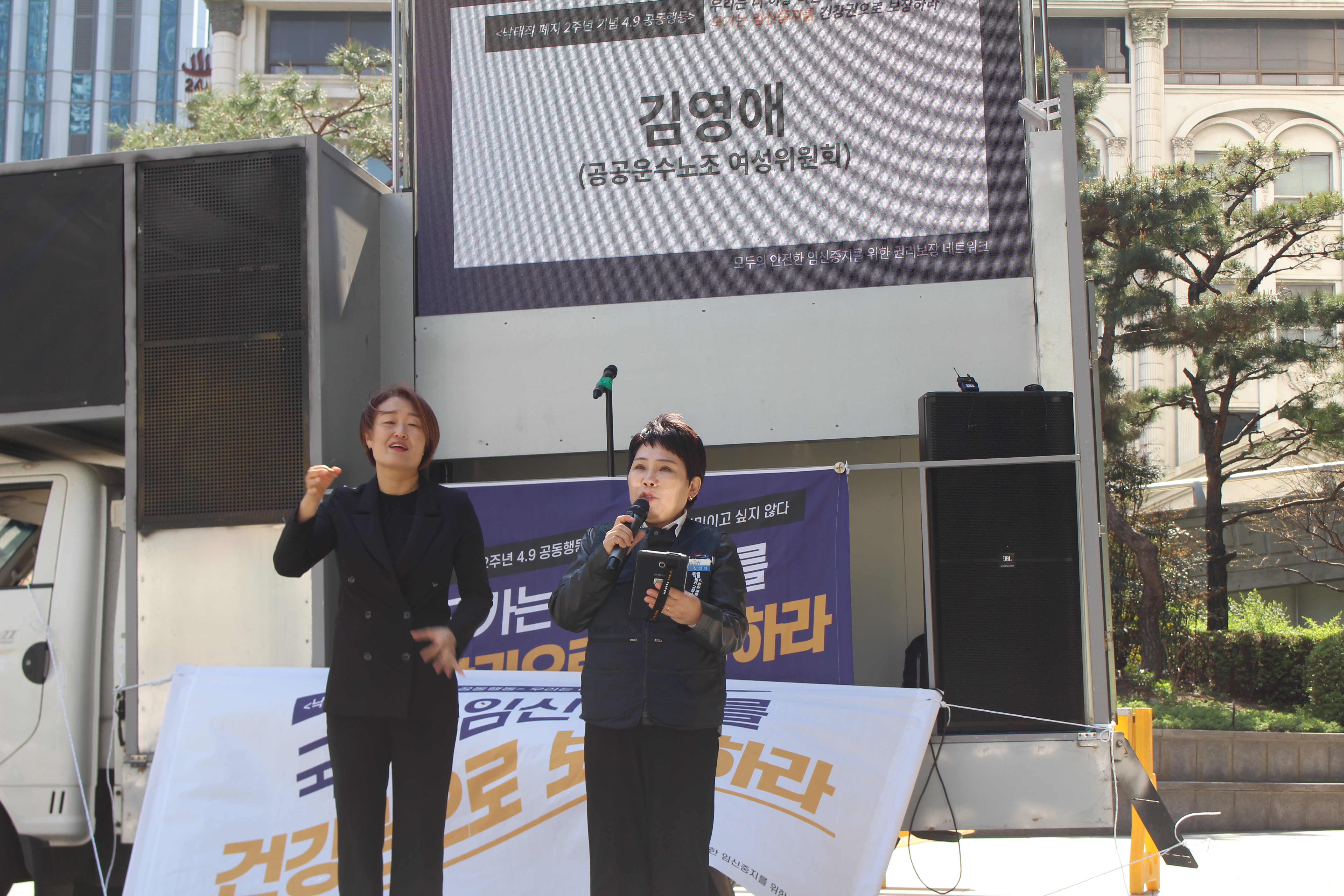 임신중지 권리를 이야기하기 위한 다양한 사람들이 집회 발언을 이어갔습니다. 현직 산부인과 의사인 최예훈님은 실제 의료현장에서 임신중지와 관련하여 겪는 어려움을 나눠주셨고 고나영님은 장애여성에게도 안전한 임신중지와 재생산의 권리가 필요함을, 김영애님은 성.재생산 권리가 곧 모든 노동자들의 기본권임을 발언하였습니다. 심청님은 재생산 정의를 이루려면, 법적 제도에서 끝나는 것이 아니라 사회 불평등이 해결되어야 한다 발언했고, 양지혜님은 청소년들이 마주한 현실을 짚으며 청소년도 보호자 없이 충분한 정보 속에서 임신중지를 결정할 권리를 보장받아야한다고 말했습니다. 그리고 임신중지와 관련한 경험을 나누며 재생산 권리를 촉구하는 시민들의 자유발언이 있었습니다.