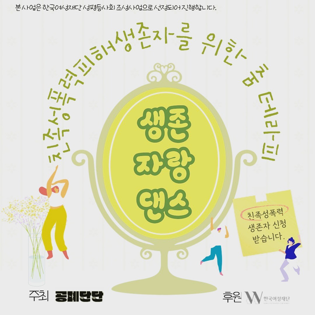 동은 : 입법운동에 대한 고민을 본격적으로 나누기 전에 공폐단단 올해 활동에 대해서 더 알고 싶다. 여성재단 공모를 통해 ‘생존자랑댄스’ 프로그램을 진행하고 있고, 다큐도 기획하고 있다고 들었다.