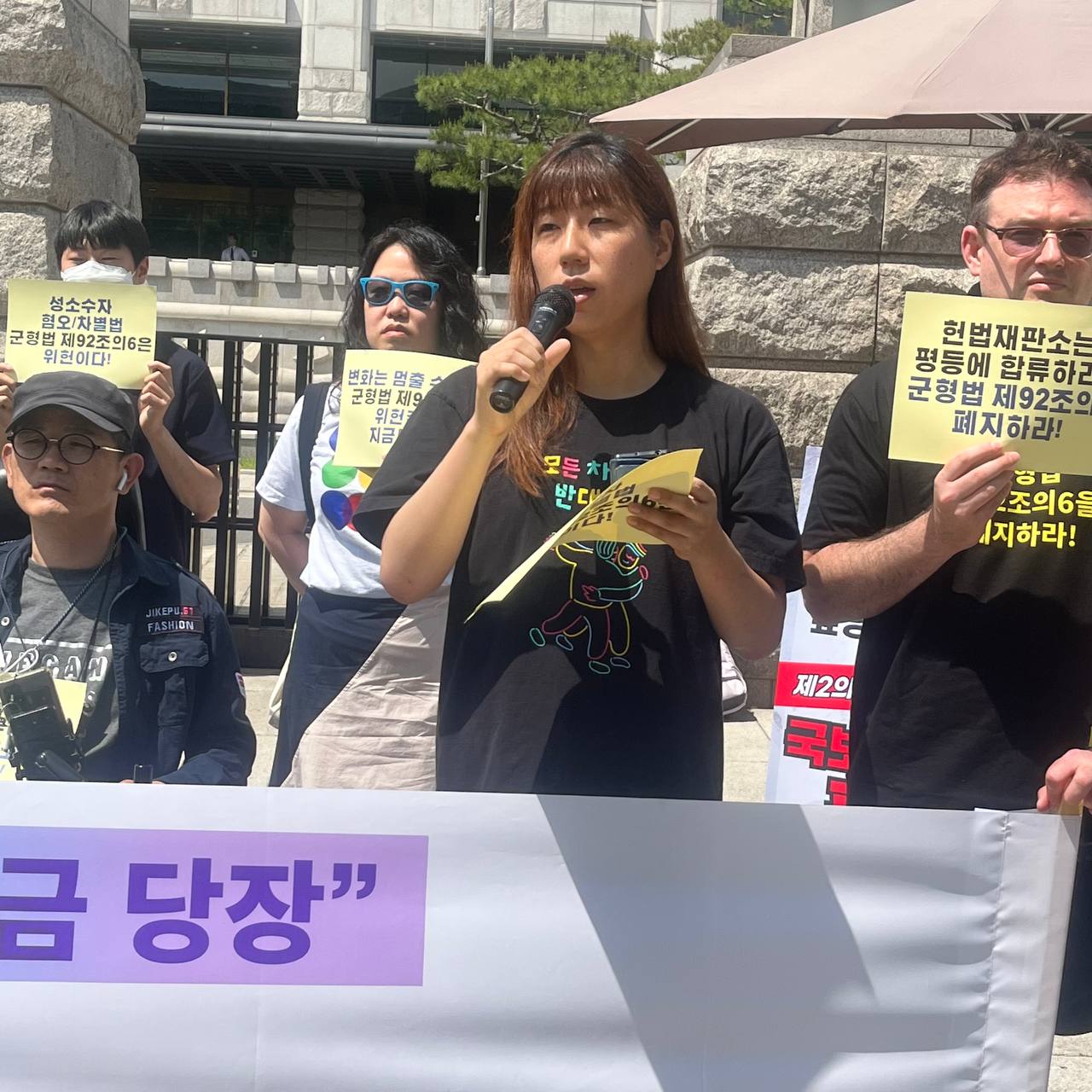 지난 30년 성소수자 운동은 부당한 차별과 억압에 맞서서 인권과 사회정의 지평을 확장해왔다. 이러한 변화의 흐름은 우리 사회의 다양한 영역으로 확장되고 있고, 그것이 실제적인 변화로 이어지고 있다. 헌법재판소는 이제 더 이상 시간을 끌지 말라. 차별과 폭력에 저항하고 맞서는 수많은 시민들의 목소리를 들어야 한다. 그리고 대법원의 판결 취지를 적극 참작하고, 국가인권위의 의견과 국제인권기구와 학계 및 시민사회의 지속적인 지적을 받아들여 하루빨리 이 법에 대한 위헌 결정을 내려야 한다. 변화는 멈출 수 없다. 군형법 제92조의6 위헌 결정 지금 당장!