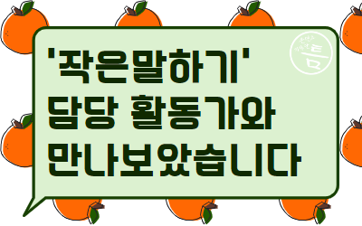 첫 콘텐츠로 2020년도부터 작은말하기와 함께 하고 있는 한국성폭력상담소의 감이 활동가님을 모시고 인터뷰를 진행했습니다. 감이 활동가님은 2000년대 초반에 처음 한국성폭력상담소에 와서 성폭력생존자말하기대회 기획단으로 참여했고, 자원활동을 하면서 종종 작은말하기에 참여할 기회가 있었다고 해요.