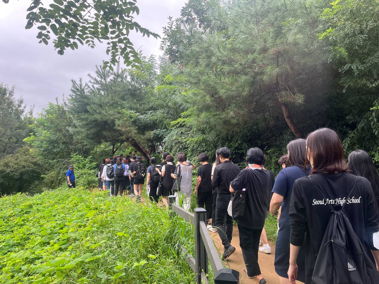 10시 10분 즈음엔 관악산 생태공원 사건 발생지로 이동했습니다. 많은 이들이 줄지어 참담한 마음으로 고인이 걸었던 산길을 따라 올라갔습니다.