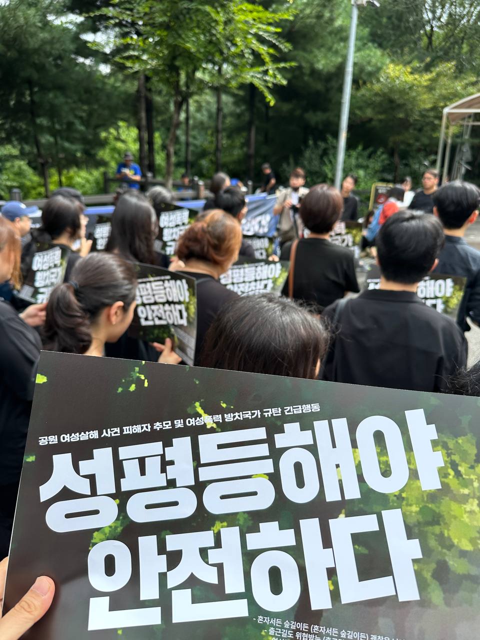 이에 8월 24일, 한국성폭력상담소는 한국여성의전화와 함께 공원 여성살해 피해자에게 애도를 표하며 여성폭력 방치국가를 규탄하기 위한 긴급행동을 개최했습니다.