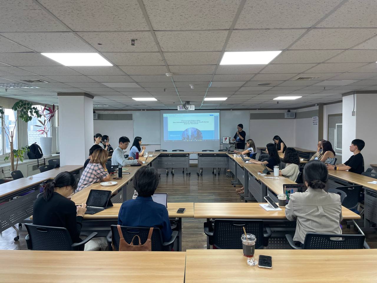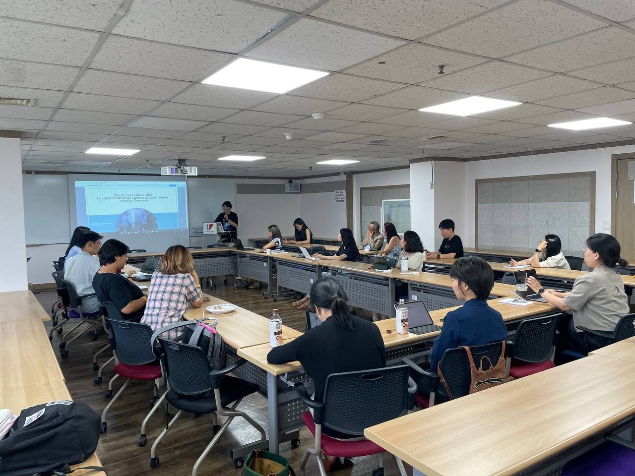 캐론 킴의 발표가 끝난 후, 질의응답이 이어졌습니다. 가이드라인을 현실에서 적용하고자 할 때 정부나 의사회에서 ‘WHO 가이드라인은 저소득국가 대상이니 우리는 필요없다’고 하는 현실, 백래시 시기에 임신중지가 여성인권과 결부되어 저항감이 큰 현실, 원격진료 도입과 관련하여 디지털 헬스 케어 분야에서 기업의 지배력이 큰 한국 사회의 맥락을 어떻게 고려할 수 있을지 등 WHO 가이드라인을 한국의 상황과 맥락에 적용하는 것에 대한 깊은 논의들이 오고갔습니다. 캐론 킴은 가이드라인에서 임신중지가 의료서비스뿐만이 아닌 명백한 인권문제라고 명시했다는 것을 짚었습니다. 또한, WHO에 중저소득 국가의 요청이 많기는 하지만 임신중지 가이드라인은 소득 수준과 상관없이 모든 국가에 적용되어야 하는 가치를 담으려고 노력했다는 말을 덧붙였습니다. 그러나 한편, 개별국가의 상황과 맥락이 모두 다르기 때문에 WHO에 많은 요구와 파트너십으로서의 상호작용이 필요하다고 했습니다.