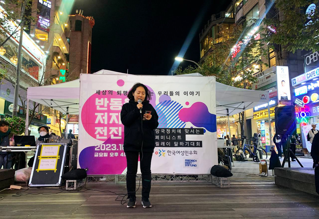 추위와 따뜻함 사이에서 흔들리는 어느 가을 10월 셋째주 토요일! 한국여성민우회에서 개최한 릴레이 말하기 대회 <반동을 저지하며 전진>이 열렸습니다.