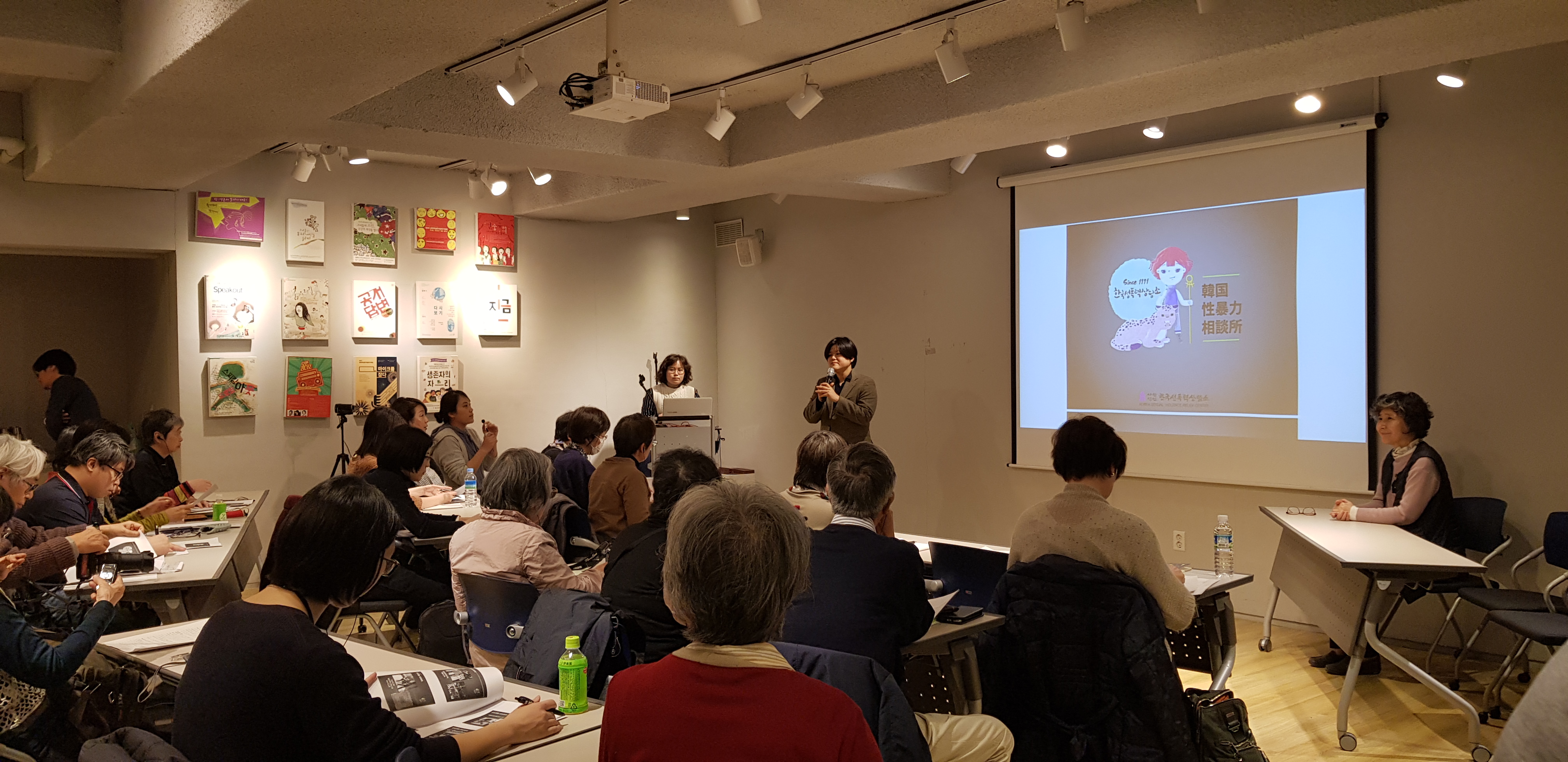 지난 3월 18일, 일본에서 일본군 ‘위안부’ 문제 해결을 위해 활동하는 ‘희망씨앗기금’에서 조직한 <한국의 #Me Too, #With You를 느끼는 여행(韓国の#Me Too、#With Youに触れる旅)> 방문단이 한국성폭력상담소를 찾아 주셨습니다. 부설연구소 <울림>의 연구원 주리가 유창한 일본어로 상담소 소개 및 한국 여성운동의 역사 소개를 진행하였습니다. 상담소의 역사와 상담소 체계, 한국 여성운동이 어떻게 현재까지 이어져 오고 있는지 등 반성폭력 운동의 역사에 대한 설명을 들으며 고개를 끄덕이는 사람들이 참 많았습니다. 주리 연구원이 준비한 일본어 ppt와 일본어 발제 덕분에 내방해주신 손님들이 한결 익숙하게 상담소를 만날 수 있었습니다.