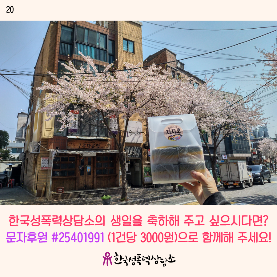 상담소의 생일을 함께 축하해주고 싶은 분들은 문자후원 #25401991로 함께해 주세요!