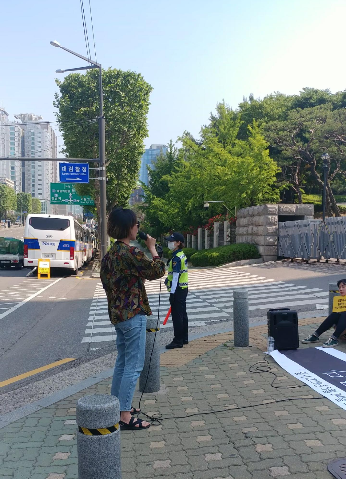 대검찰청 안에서 점거농성이 시작된 2시에 단체 활동가 및 시민들은 대검찰청 앞에서 기자회견을 진행했습니다.