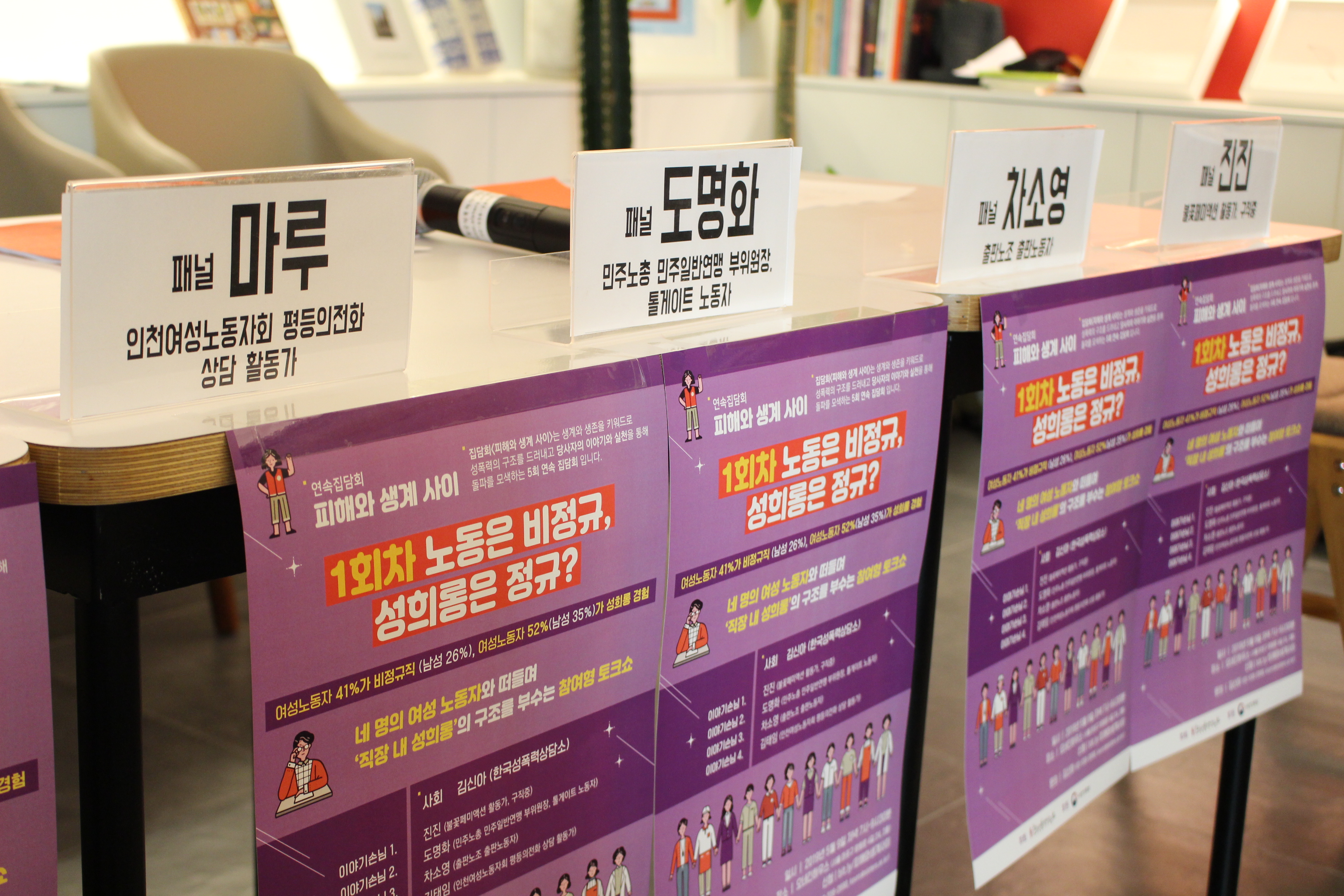여튼 본문으로 들어가서, 5월 9일 목요일 오후 7시, 「피해와 생계 사이」 연속 집담회 1회 <노동은 비정규, 성희롱은 정규?>가 서울 망원동에 위치한 오네긴하우스에서 시작되었습니다.
