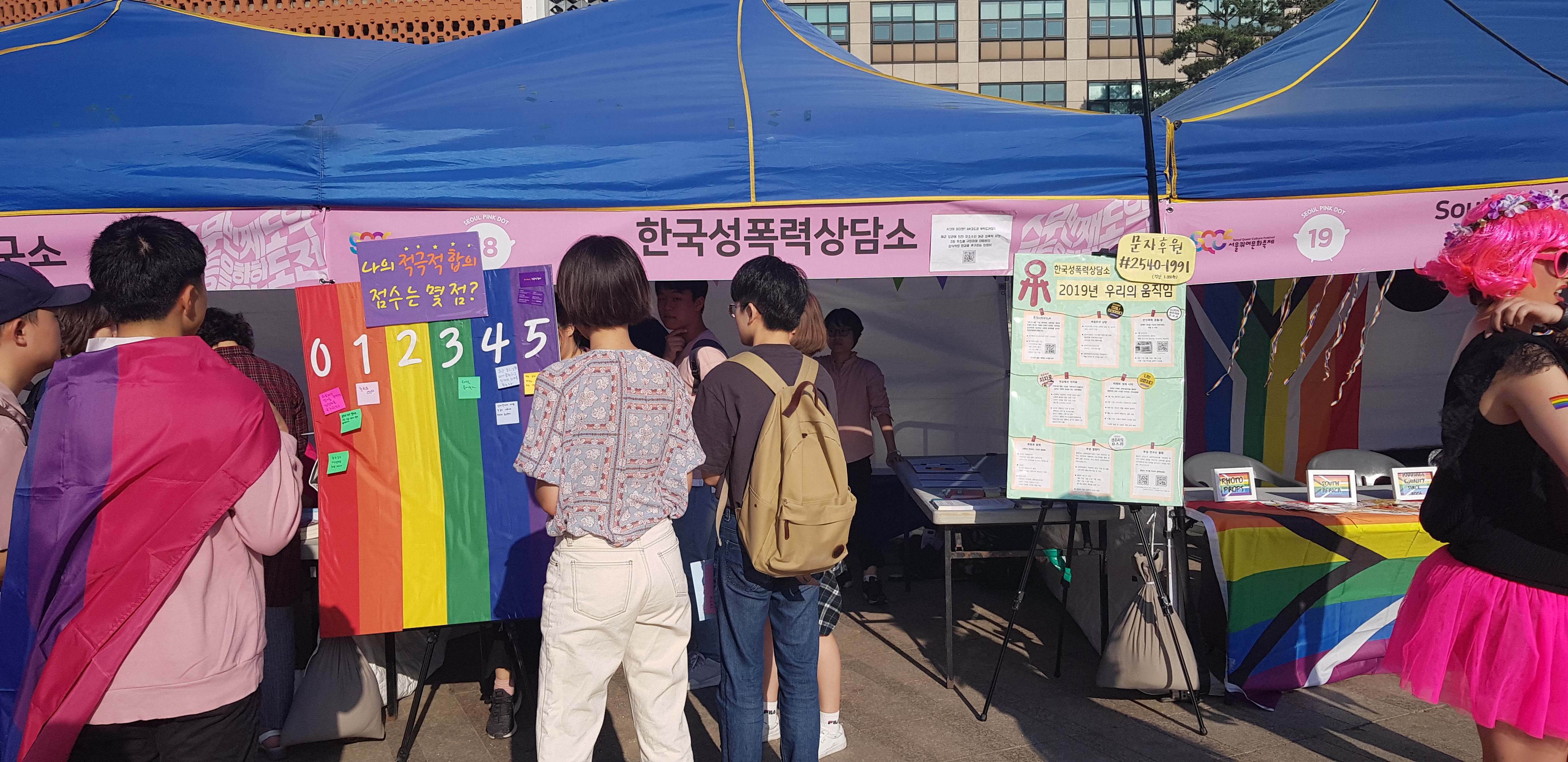 한국성폭력상담소는 그동안 매년 서울퀴어문화축제에 참여하여 길거리괴롭힘 소멸 프로젝트 <넌진상> 부스, 여성주의 자기방어훈련 <퀴어셀프디펜스> 프로그램 등을 진행해왔고, 상담소가 오랫동안 연대해온 차별금지법제정연대, 군관련성소수자인권침해차별신고및지원을위한네트워크 등의 활동에도 적극적으로 함께 해왔습니다.