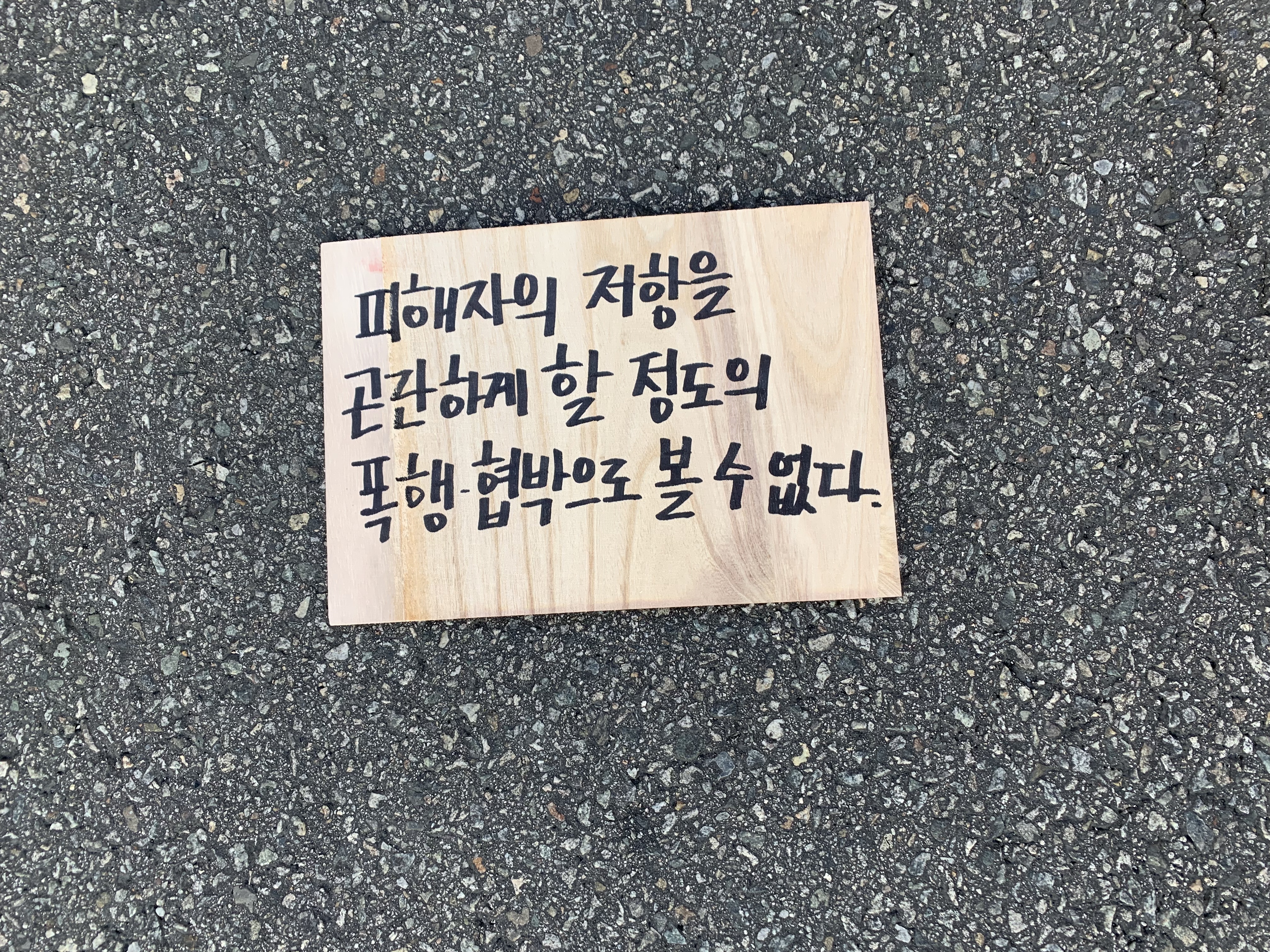 청원동의에 대한 감사의 말씀과 강간에 대한 인식 고발을 위해 여기에 섰습니다. 먼저 강서여성전화 회원분들 청원에 필요한 100명의 동의를 위해 단체 톡방에서 연대해주신 것 감사드립니다. 한국성폭력상담소는 성폭력 생존자 자조모임인 <작은말하기>와 청원을 위해 많이 애써 주신 것 감사드립니다. 안양여성의전화는 제가 안양역에서 직접 청원의 동의를 얻도록 판넬을 구성한 것과 적극 도와주신 것 감사드립니다. 다 말씀드리지 못하지만 제가 이 자리에 있는 것으로 마음을 전달합니다.