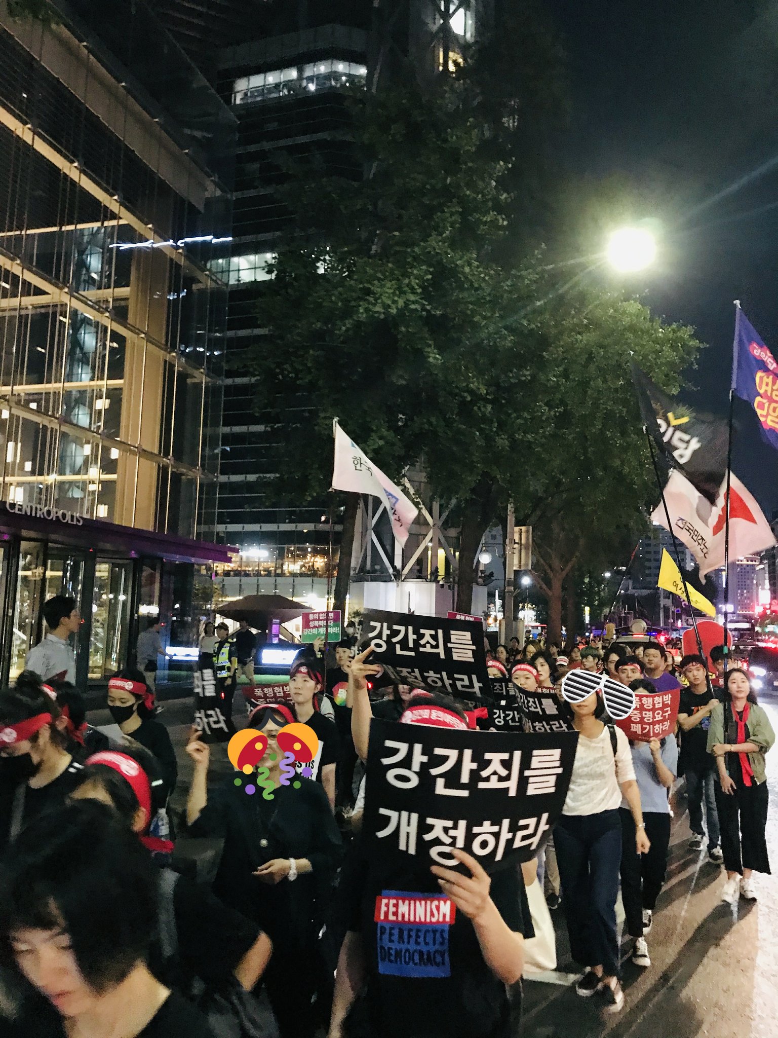 서울역사박물관 앞에서 시작된 행진은 세종로와 종각을 거쳐 조계사 앞을 지나 광화문 광장을 가로지르며 이어졌고, 대오는 다시 서울역사박물관 앞으로 돌아왔습니다. 저마다 다른 목적으로 토요일 저녁의 도심을 찾은 시민들에게 우리가 왜 이 광장을 걷고 있는지, 왜 강간죄가 개정되어야 하는지, 국회와 사법부, 정부에게 외치는 우리의 목소리를 더 잘 전달할 수 있도록 연대를 요청하였습니다. 목이 터지게 노래를 부르고 구호를 외치며 거리를 꽉 채웠고, 연대의 의미를 다시금 되새겼습니다.