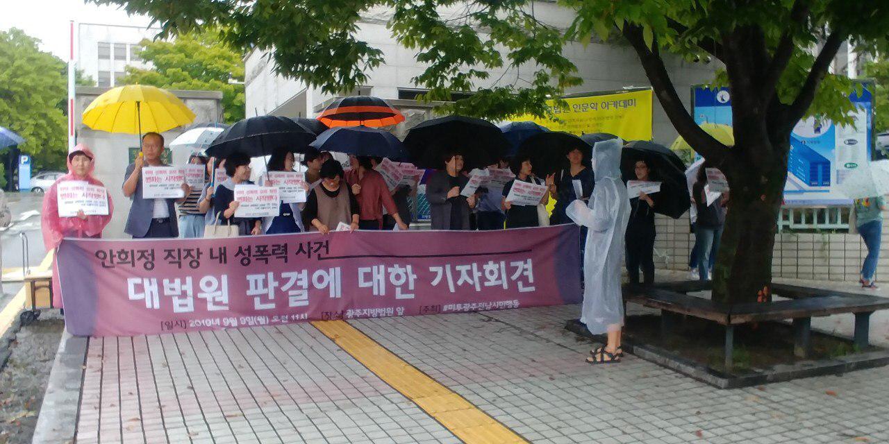 같은 날, 광주에서는 이 사건의 대법원 판결을 환영하고 의미를 짚는 기자회견이 미투광주전남시민행동 주최로 광주지바법원 앞에서 열렸습니다. 전국에서 연대해주신 수많은 분들께 다시 한번 감사드립니다!