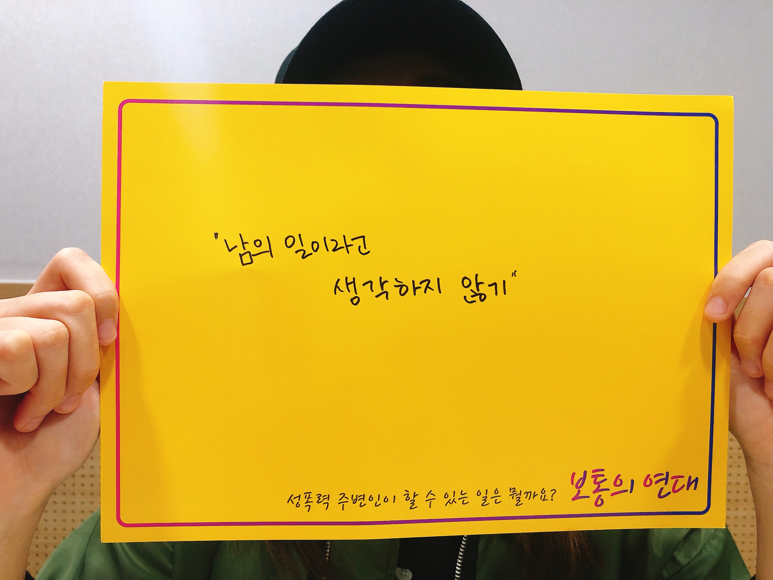 성폭력을 '피해자'나 '가해자' 개인, 혹은 '여성'만의 문제로 바라보는 인식을 바꾸고 성폭력 주변인으로서 사회구성원의 목소리를 만들어가고자 하는 캠페인이에요. 모든 사람은 성폭력 주변인이 될 수 있다는 전제하에, 사람들이 성폭력에 대해 어떤 경험을 하고 어떻게 생각하고 느끼는지 인터뷰하고자 해요. 성폭력이 일상과 어떻게 연결되는지, 성폭력 주변인으로서 어떤 일상을 살아가고 있는지 알고 싶어요. 여러분의 경험을 있는 그대로 이야기해주세요.