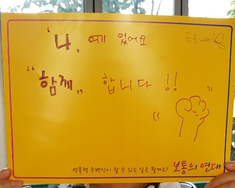 미투가 광화문 광장에서 울렸을 때는 정말 눈물 나게 고마웠어요. 사회 각층에서 미투를 다 했을 때는 분명히 제가 경험한 친족 성폭력에 대해서도 나올 거라고 생각했기 때문에 기다렸습니다. 친족 성폭력에 대해서도 활발하게, 그냥 어디서나 들렸으면 좋겠다는 염원입니다. 분명히 이뤄지지 않을까요?