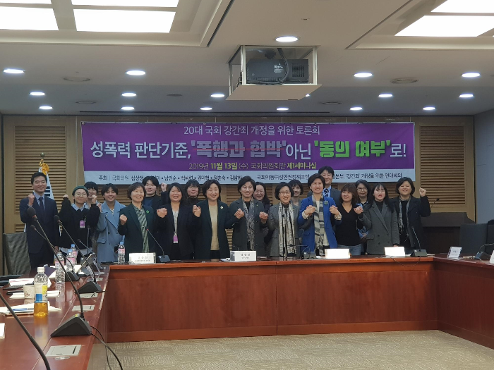 한국성폭력상담소는 2019년 3월 21일부터 전국 209개 단체와 함께 "'강간죄' 개정을 위한 연대회의" 활동을 해오고 있습니다. 이 글은 지난 2019년 11월 13일 오후 2시에 국회의원회관 제1세미나실에서 열린 "20대 국회 강간죄 개정을 위한 토론회 - 성폭력 판단기준, '폭행과 협박'이 아닌 '동의 여부'로!"의 참가 후기입니다.