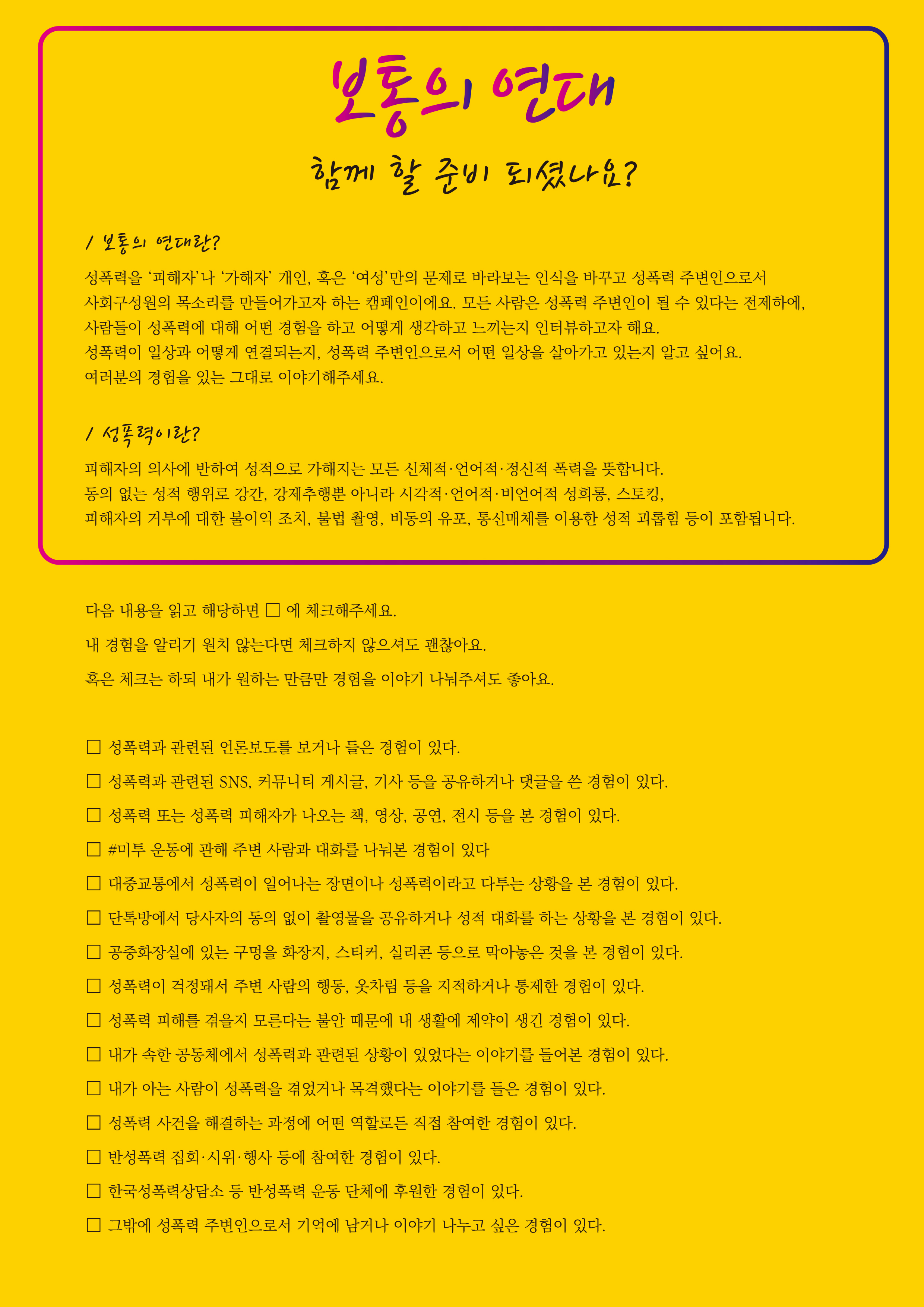 [보통의 연대] 인터뷰는 위 체크리스트를 활용하여 진행되었는데요.