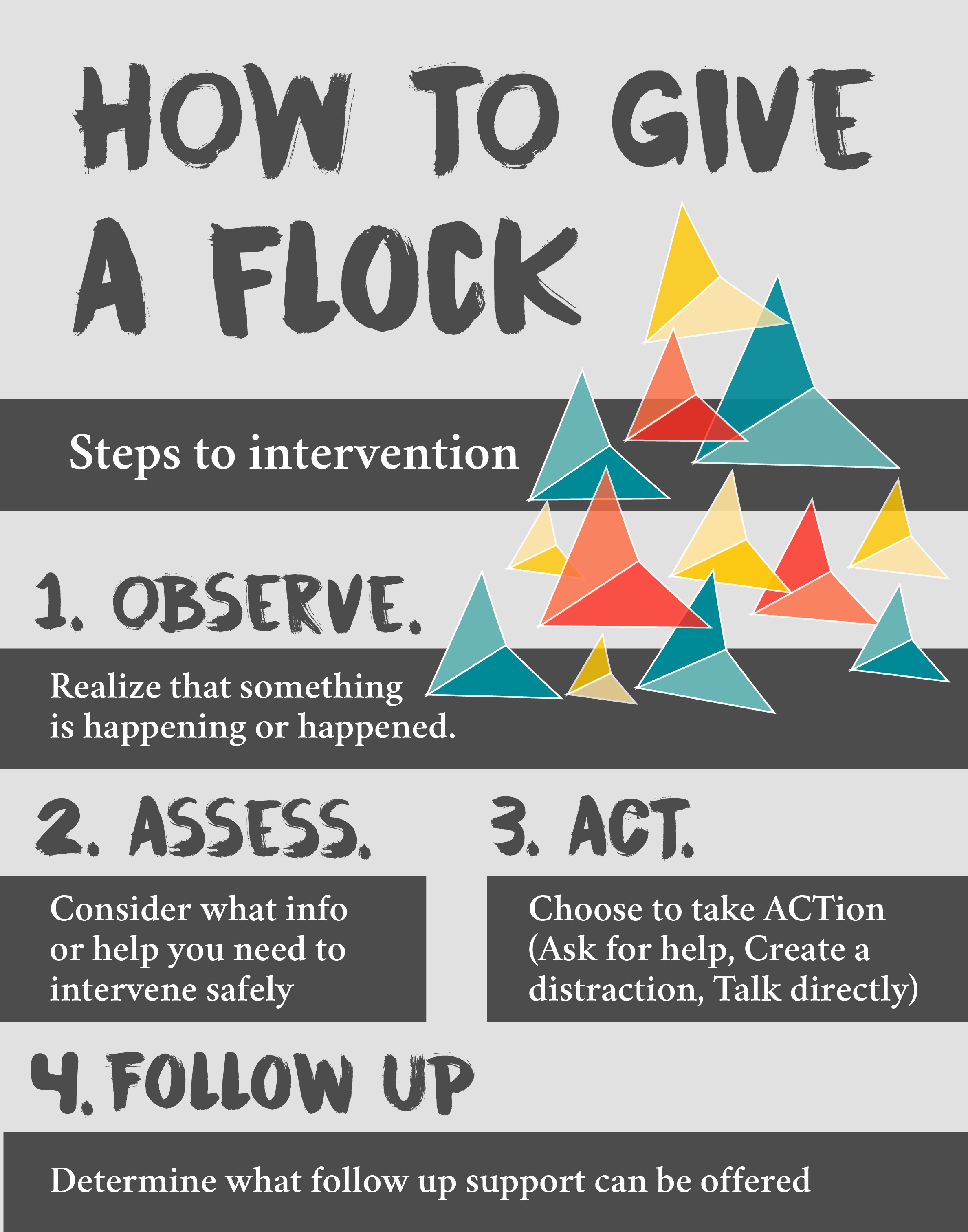 1. 관찰 무슨 일이 일어나고 있거나 일어났다는 사실을 인식하세요 2. 접근 안전하게 개입하려면 어떤 정보 또는 도움이 필요한지 고려하세요 3. 행동 행동하기를 선택하세요(도움 요청하기, 방해하기, 직접 말하기) 4. 후속조치 어떤 후속조치가 이뤄질 수 있는지 알아보세요 |
