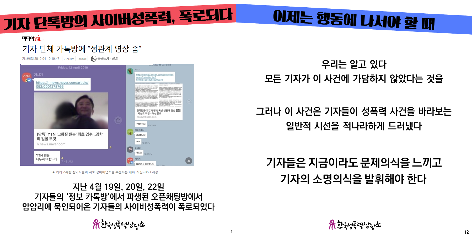 그런데 사실 그 전에는 남자들끼리 모이는 단톡방에는 그런 일들이 많이 있었죠. 야한 동영상, 불법 촬영물, 몰카로 추정되는 (촬영물)……. 또 그런 게 유포된 유명한 사건들이 있었잖아요. 그런 영상들이 돌아다니고 그랬죠.
