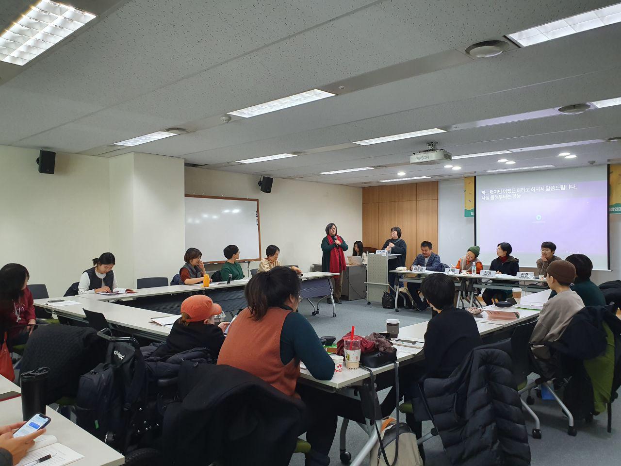 지난 12월 6일 차별금지법제정연대(이하 '차제연') 에서 올 한해동안 진행했던 차별잇수다를 결산하는 자리 <말하는 우리, 커지는 용기>가 진행되었습니다. ‘차별잇수다’는 차별경험을 모여 이야기 하고 지지와 공감을 보내고 변화지점을 함께 모색하는 워크숍인데요, 2019년 4월부터 12월까지 크고 작은 모임과 행사에서 총 39회 진행했습니다. 결산보고회는 워크숍 촉진자로 차별잇수다를 진행했던 차별금지법제정연대 전략조직팀활동가들이 발표하고, 해당 조직에서 토론하며 의미를 되짚고 내년을 준비하기 위해 마련된 행사입니다. 차별잇수다 프로그램이 진행되게 된 배경, 경과부터 말하기의 의미, 차별잇수다가 남긴 과제까지 차제연 소속 단체 활동가들과 함께 논의하는 순서로 진행되었습니다. 당일의 행사에는 차제연 전략조직팀에서 활동하는 상담소 성문화운동팀 신아 활동가가 발표로 참여했습니다.