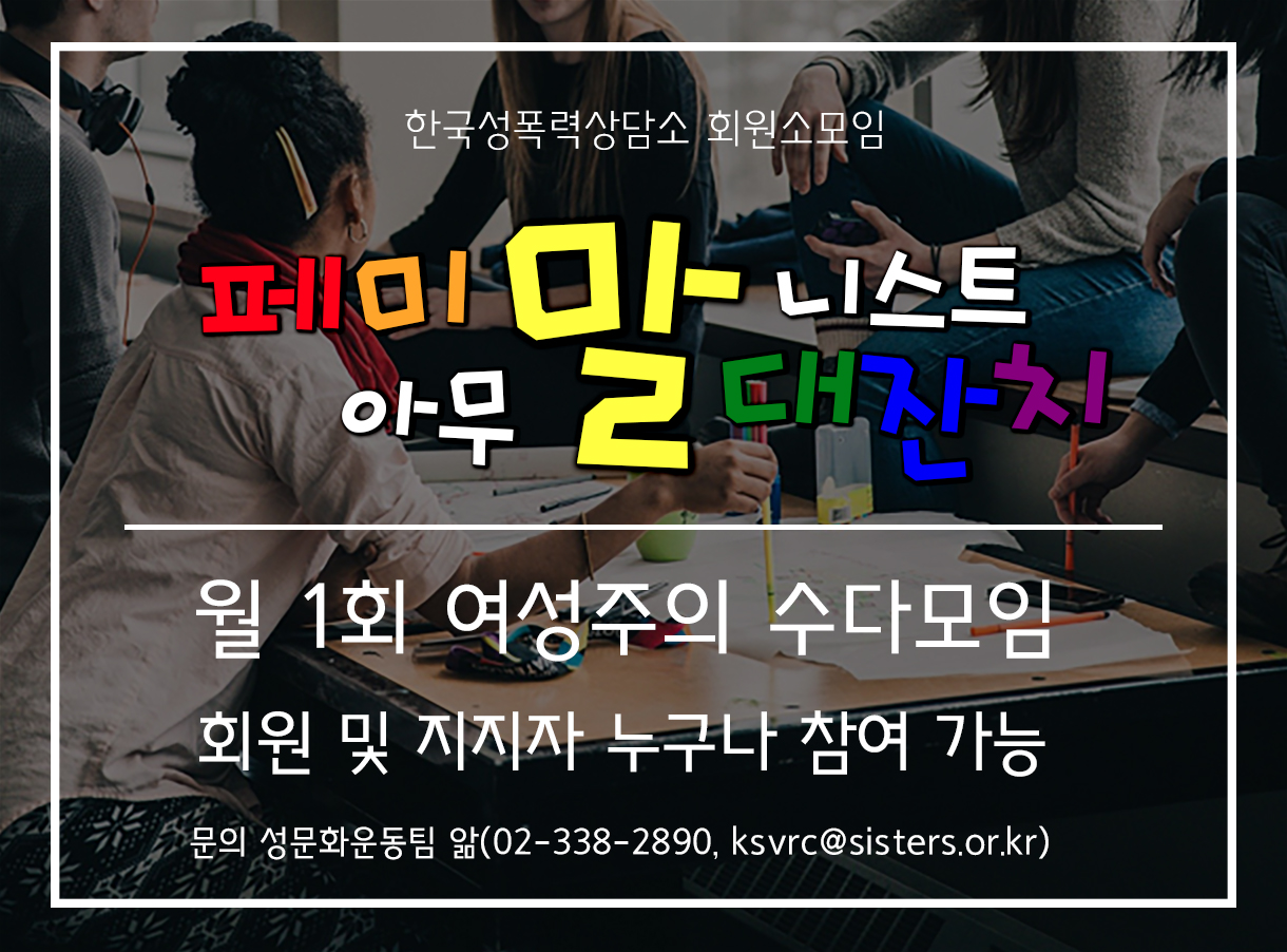 ◆ 문의 : 한국성폭력상담소 앎 (02-338-2890, ksvrc@sisters.or.kr)