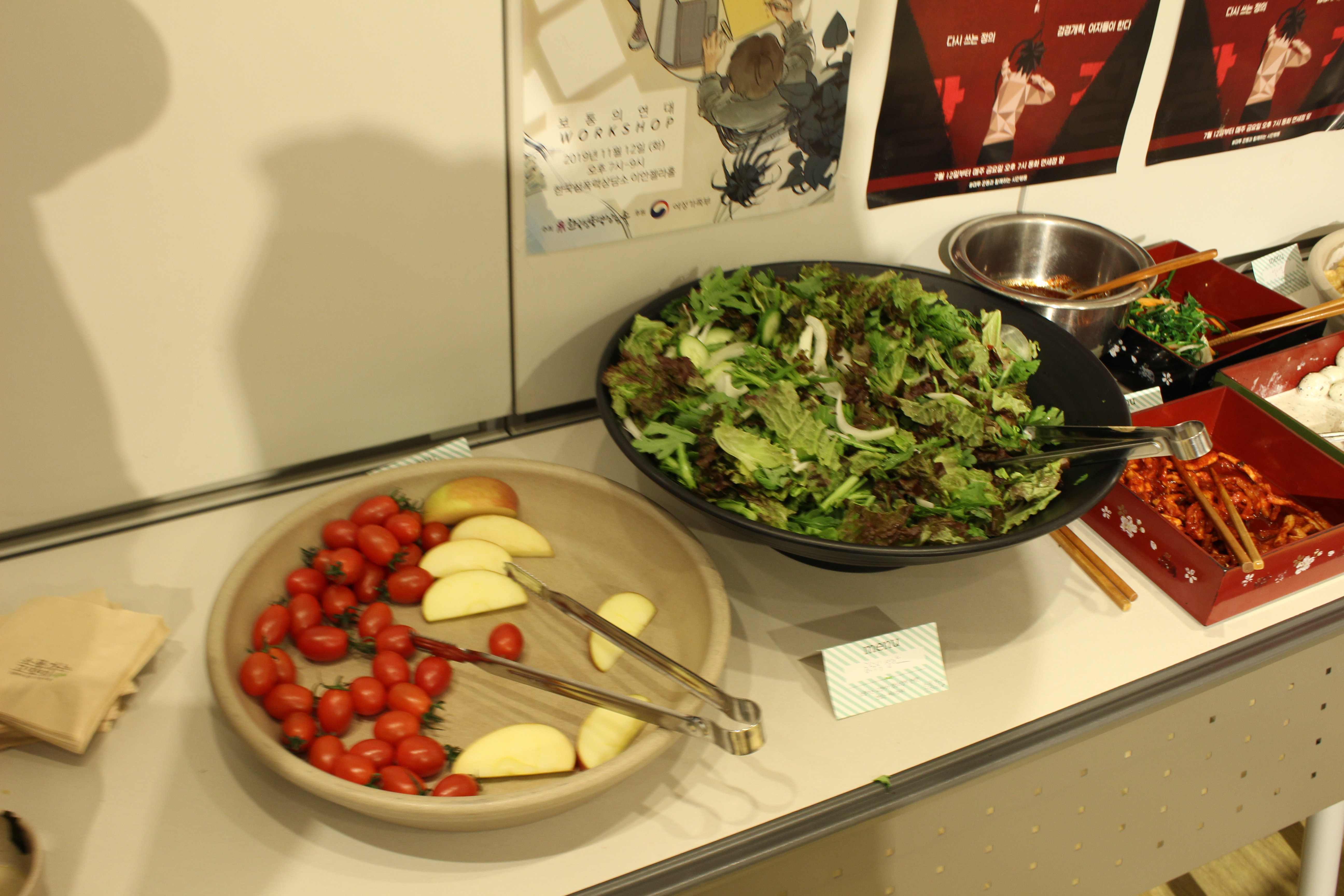 본 행사가 끝난 뒤 2부 행사로는 상담소 1층에서 앎의 타로 부스, 캐시의 사주 부스가 진행되었는데요. 사진으로는 남기지 못했지만 아주 폭발적인 인기를 끌었습니다. 본 행사에서 각각 공연, 음향 스탭에 이어 2부 부스까지 운영해주신 캐시와 앎에게 감사의 인사를 드려요. 1층에서 부스들이 운영되는 사이 이안젤라홀에서는 본 행사에 이어서 뒷풀이를 진행했습니다.