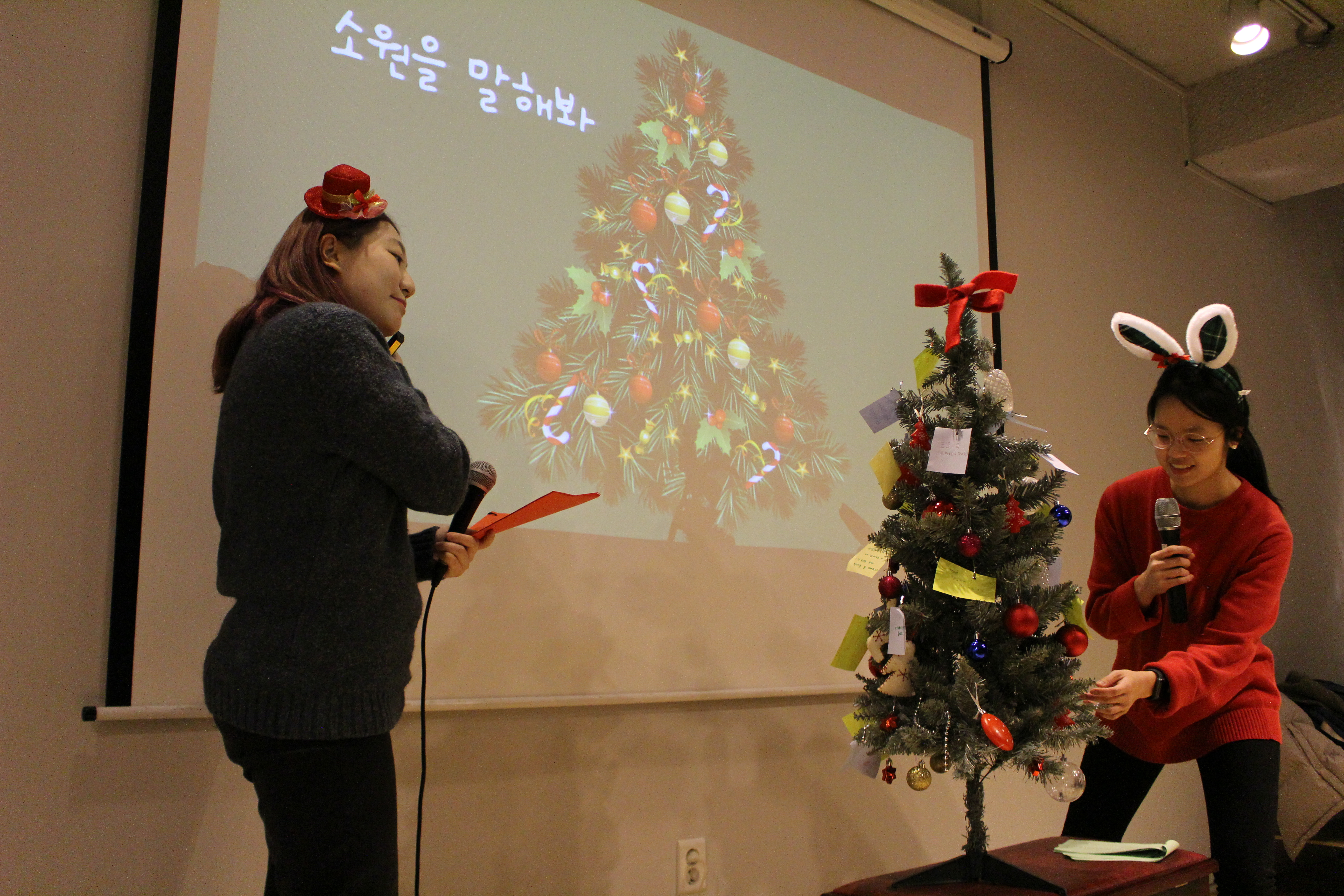 소원을 말해봐!는 본 행사 전에 트리에 걸었던 소원 중 몇가지를 뽑아서 함께 듣고 선물을 드리는 코너였어요. 세 분을 모셔서 그 소원을 쓴 이유를 여쭤보고 선물을 드렸습니다.