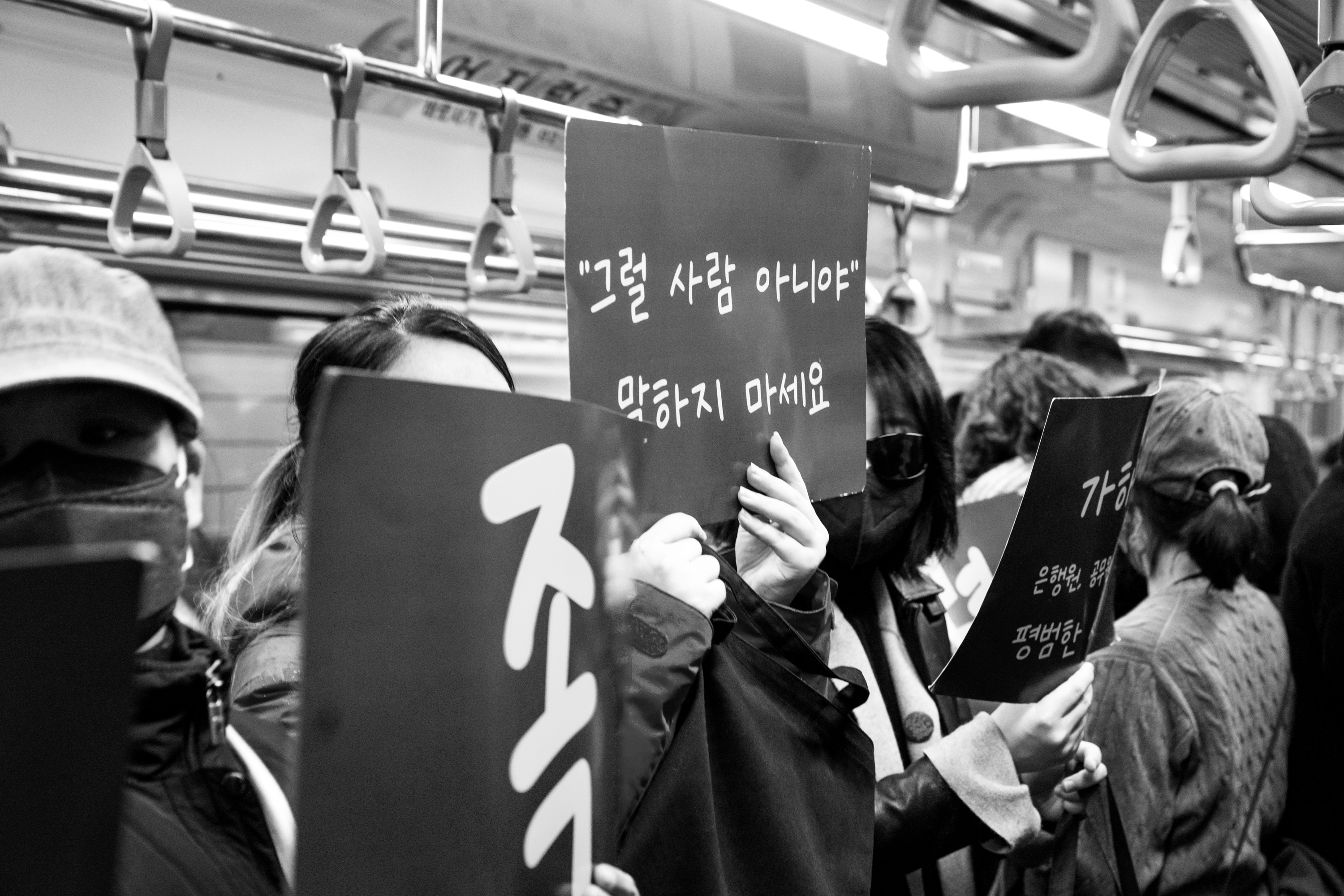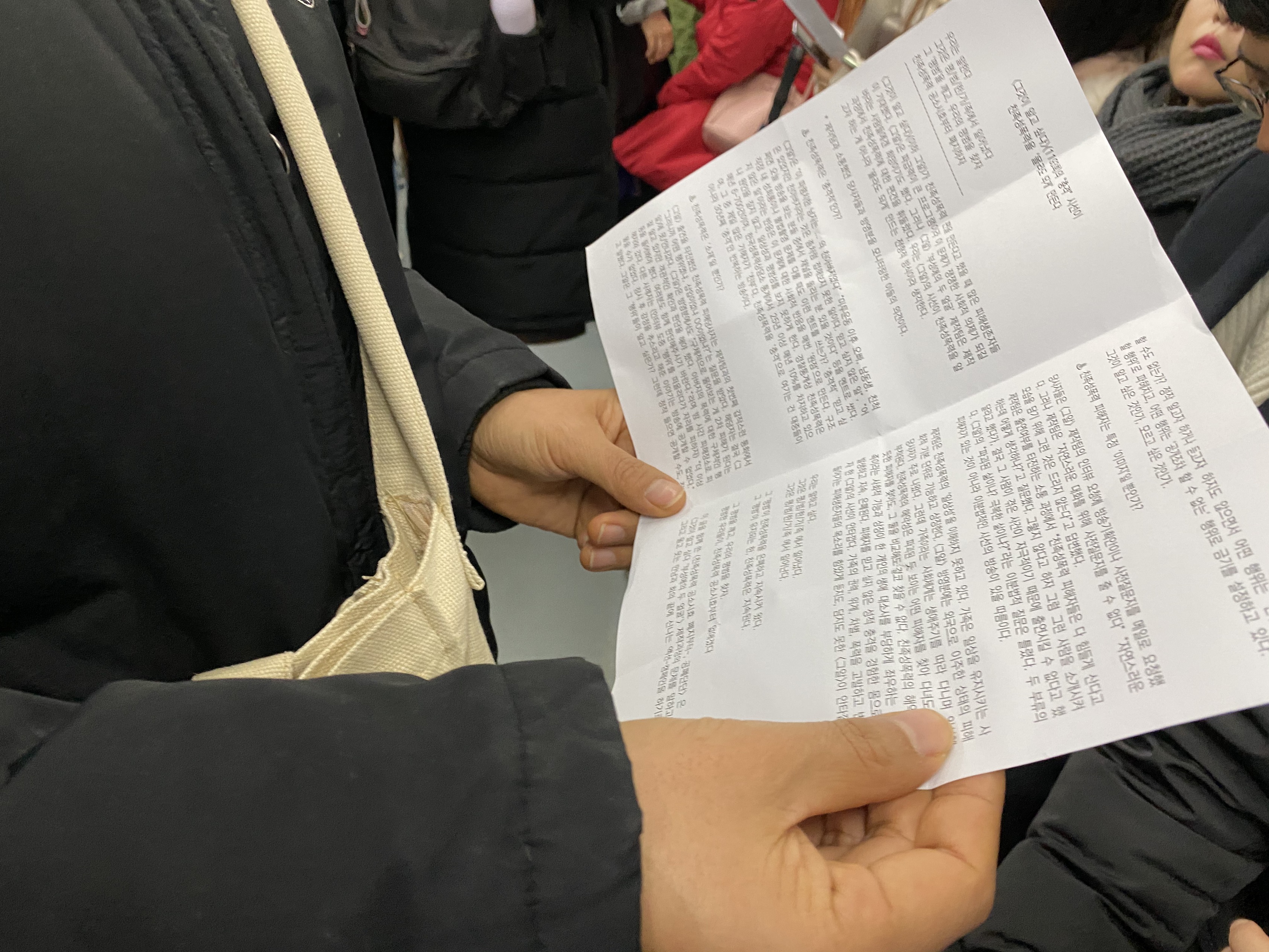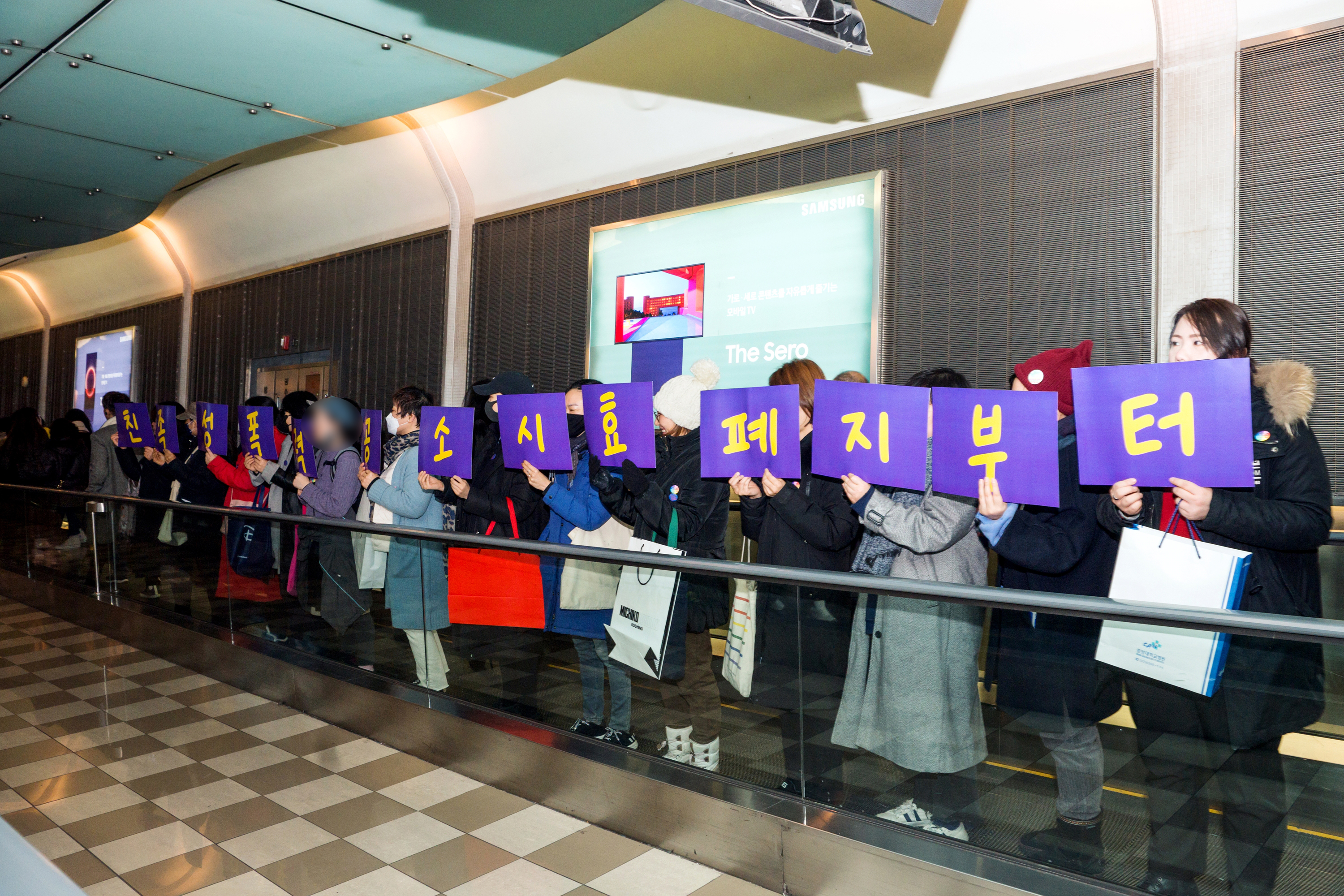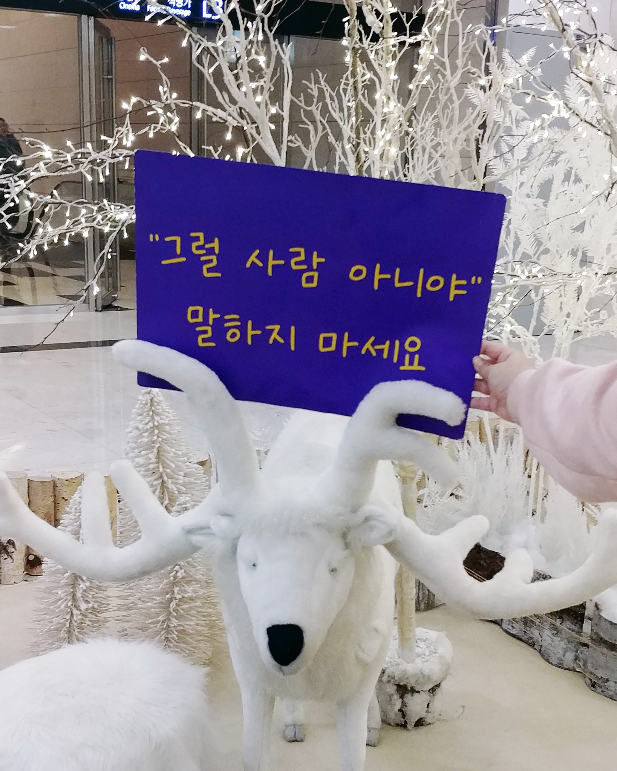 촛불집회도 생각났는데요. 그때는 절대다수에 파묻혀있어서 괜찮았는데, 이건 스무 명 중 한 사람이고, 숨어 있으면 안 되잖아요. 이런 액션을 해보는 건 처음이라서 좀 부담도 됐어요. SBS 사옥 앞에서는 무섭기도 했어요. 경비원이 계속 뭐라고 하니까 ‘혹시 문제가 생기면 어떡하지?’ 불안하기도 했고요. 조용하게 무빙워크에서 피켓을 들고만 있을 때는 퍼포먼스 같은 조용한 시위가 좋았어요.