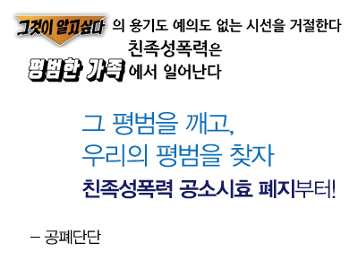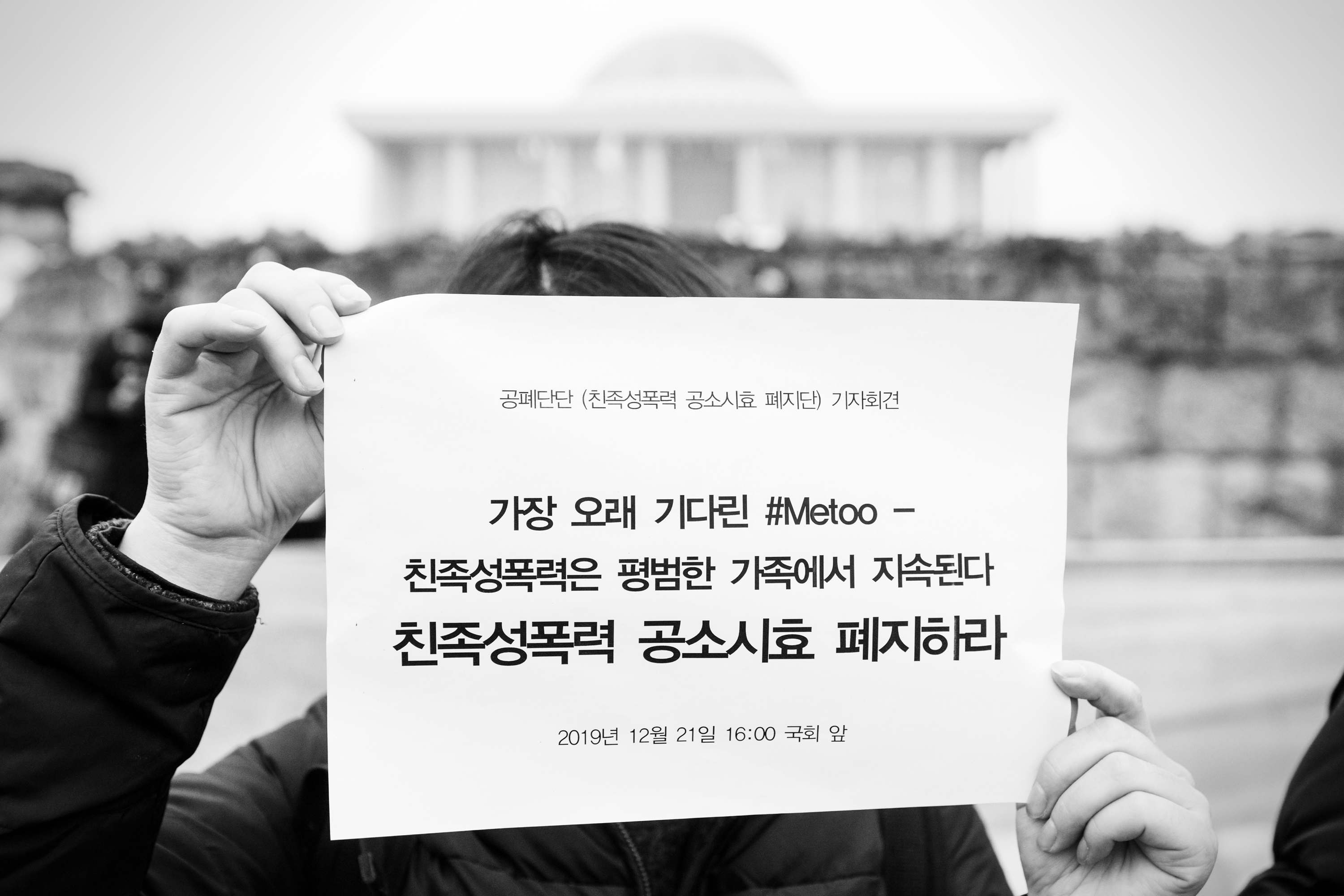 친족 성폭력은 사회적 기본 단위로 상징되는 ‘가족’에 의해 일어나고, ‘가족’의 사회적 기능과 상징적 의미에 의해 지속, 은폐됩니다. 설령 가해자가 죽더라도 ‘가족’이라는 관계는 끊어낼 수 없는 현실에서 피해자가 친족 성폭력을 신고하기란 너무나도 어렵습니다. 겨우 용기를 내서 신고하려고 마음먹고 보면 이미 공소시효가 지나 있는 사례가 부지기수입니다. 친족 성폭력 공소시효를 폐지해야 하는 이유입니다.