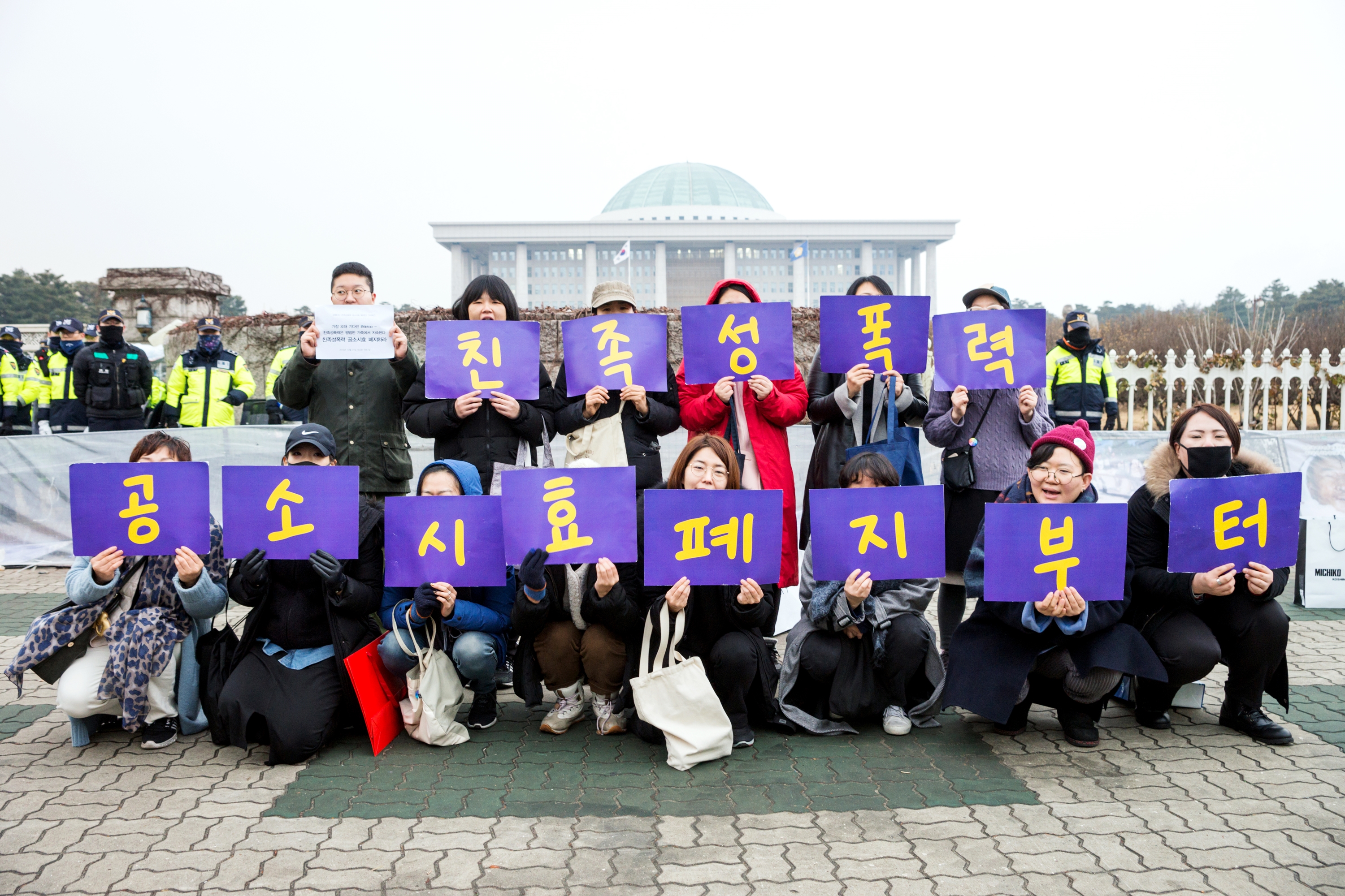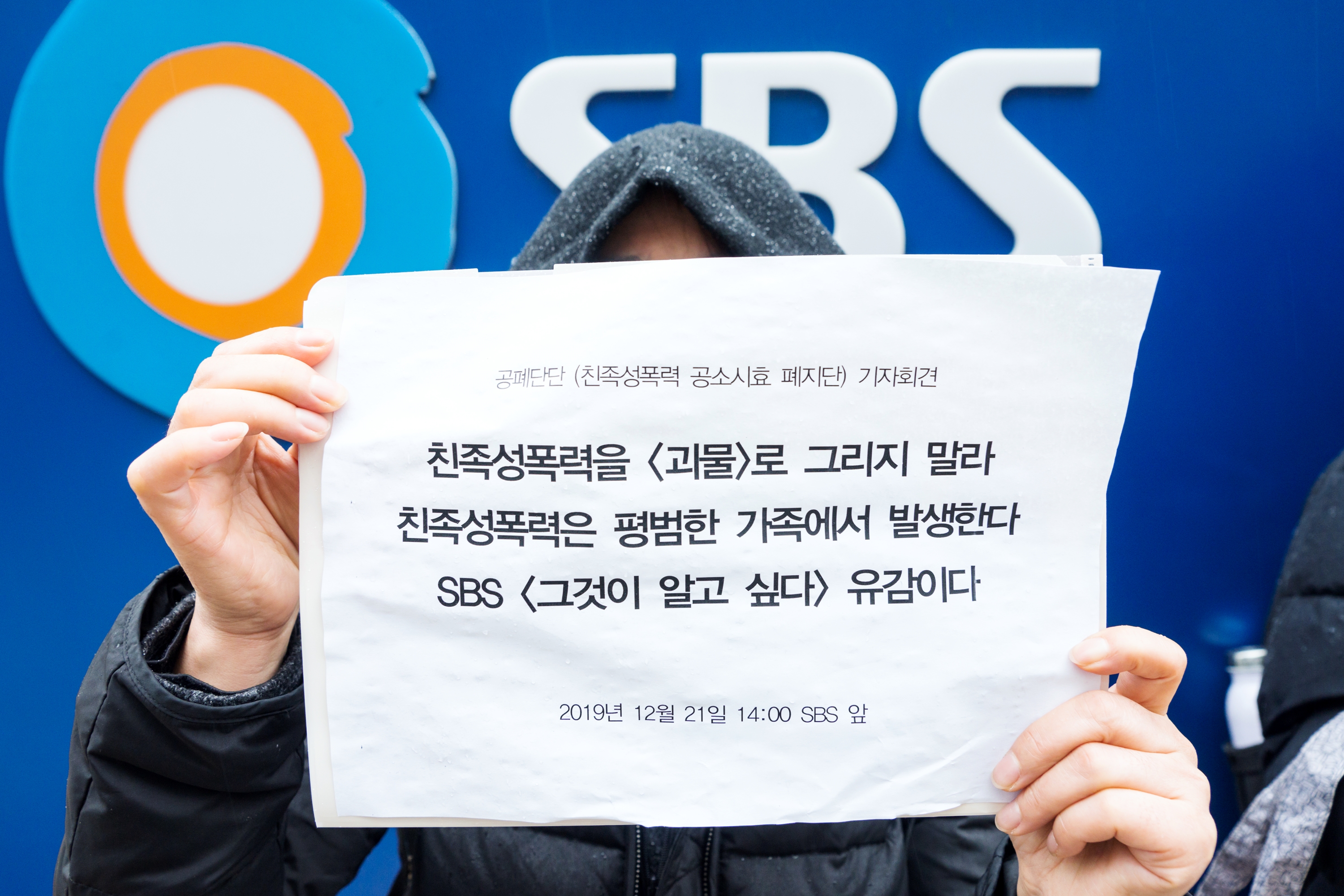 SBS 사옥 앞에서는 진눈깨비를 맞으며 친족 성폭력 공소시효 폐지부터 공폐단단 첫 번째 기자회견 “친족 성폭력을 <괴물>로 그리지 말라 친족 성폭력은 평범한 가족에서 발생한다 SBS <그것이 알고 싶다> 유감이다”를 진행했습니다.