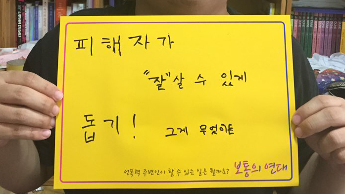그 이전 단계에서는 여러 가지 역할들이 있는 것 같아요. 피해자 개인을 위로하거나, 피해자가 이상한 사람이 된 여론을 바꿔보려고 노력도 많이 했고요. 제가 있는 커뮤니티, 제가 생활했던 공동체 안에서 성폭력 관련한 규정을 같이 제정하기도 하고. 그런 경험은 이것저것 많은 것 같아요.
