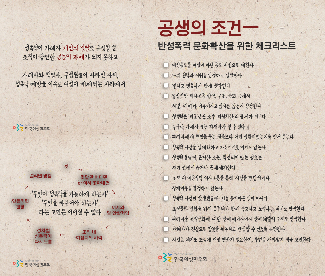 제가 성폭력 사건을 처음 접하고 문제라고 느꼈던 건 90년대 말 정도였어요. 거의 10년 가까이 항상 안타까운 상황들이었죠. 피해자들은 나타나는데, 제가 그렇게 썩 좋은 대처는 못 했던 것 같아요. 그러다가 2010년대부터 조금 나아졌던 것 같아요. 저도 나름대로 노하우도 쌓이고, 저뿐만 아니라 사회적으로도 경험이 쌓이면서, 2015년 이후부터는 좀 더 명확하게 여러 가지 상황들을 총체적으로 고려해서 피해자에게 피해가 가지 않는 원칙을 세울 수 있었던 것 같아요. 그런데 제가 잘 했는지는 모르겠어요.