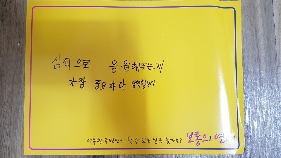 ※ 성폭력 주변인의 경험을 있는 그대로 전달하기 위하여 최소한의 윤문 및 편집 외에는 인터뷰 참여자의 말을 충실하게 실었습니다. 저마다의 관점과 논점이 조금씩 다를 수 있으나, 인터뷰 취지에 맞게 다양한 경험과 생각을 존중해주시기 바랍니다. 혹시라도 인터뷰 참여자에 대한 인신공격 등이 있을 경우 수정 또는 삭제 요청드리거나 관리자가 삭제할 수 있음을 안내드리며, 반성폭력 운동에 참여하기 위해 용기 있게 경험을 나눠주신 인터뷰 참여자 분들께 비난과 질타보다는 지지와 격려를 해주시기 부탁드립니다!