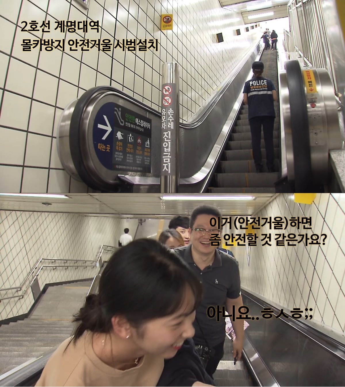 저는 내려가는 길이었고 그분들은 올라가는 길이었어요. 어떻게 제지를 할 수 없잖아요. 올라가서는 이미 그분이 어디로 사라진 다음이라 어쩔 수가 없고……. 어떻게 할 수가 없었어요. 당시에는 위험한 상황이 초래될 수도 있기 때문에, 제가 에스컬레이터 위에 있는 상황이니까 어려웠어요. 만약 같은 방향이었으면 여성분이 놀라지 않게 남성분을 따라갔을 것 같아요. 꽤 오랜 시간 동안 그게 생각이 났었어요. 내가 현장을 보고 있음에도 불구하고 도와줄 수 없었던 게……
