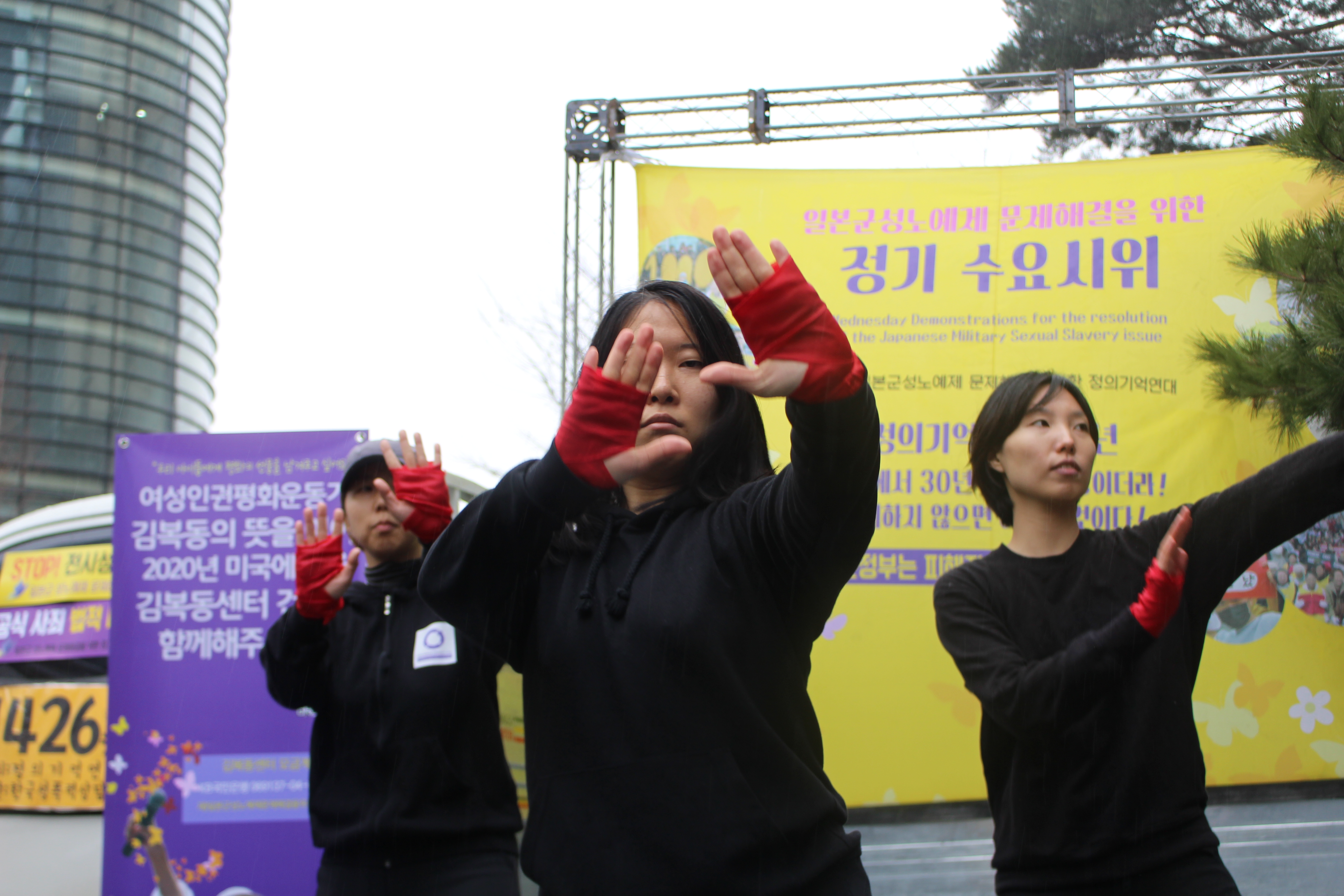 하나. 일본 정부는 전쟁 범죄를 인정하고 피해자에게 공식 사죄하라 하나. 일본 정부는 국가적으로 자행된 전시 성폭력 진상을 규명하고 피해자에게 법적 배상하라 하나. 일본 정부는 역사 왜곡을 바로잡고, 전쟁과 폭력이 반복되지 않도록 진실과 정의를 교육하라 하나. 한국 정부는 피해자의 관점으로 일본군성노예제 문제를 적극 해결하라 하나. 전쟁을 멈춰라! 전시 성폭력을 즉각 중단하고 초국가적 재발 방지 대책을 마련하라!