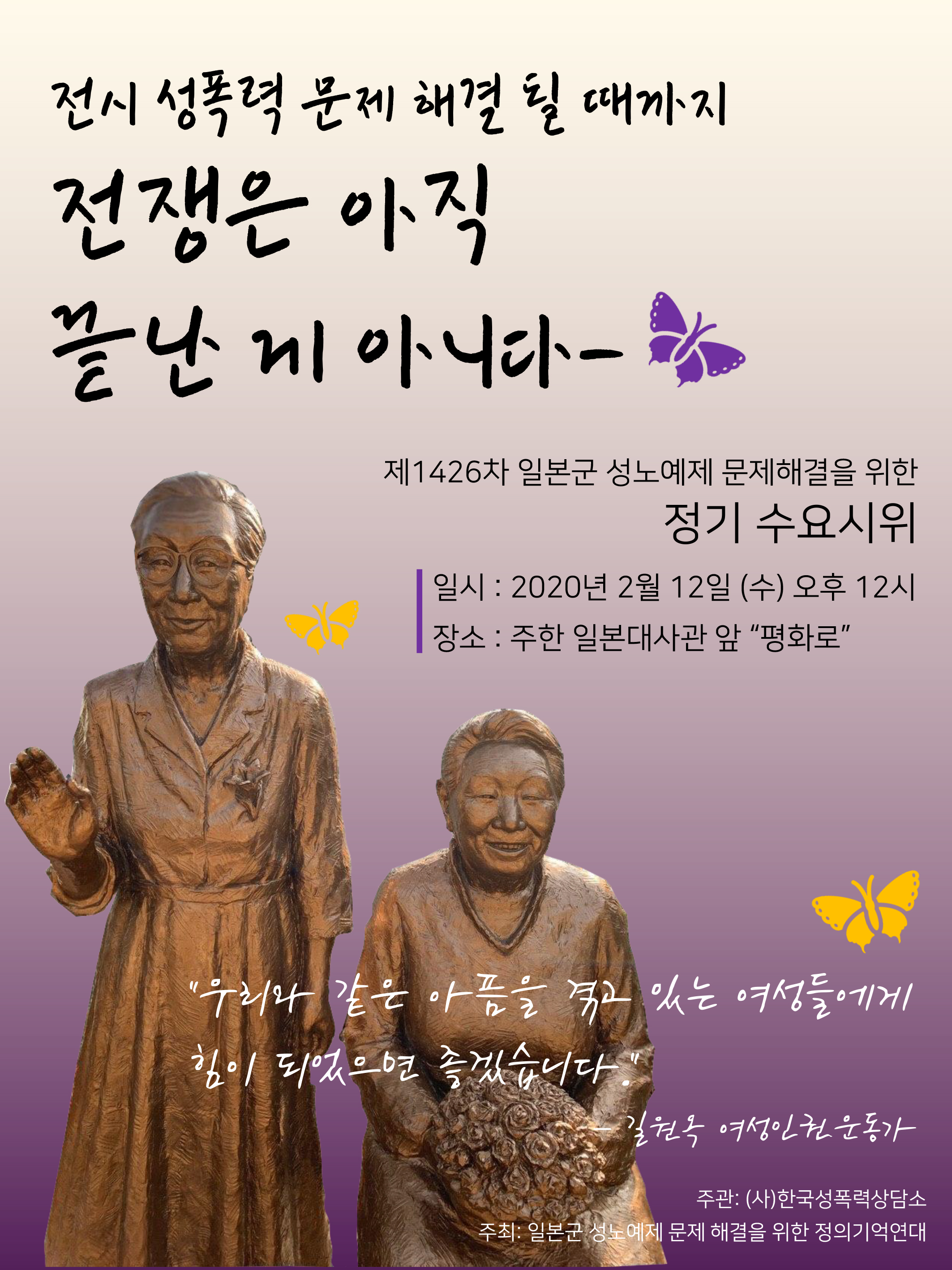 제1426차 일본군성노예제 문제해결을 위한 정기 수요시위 참가자 일동 한국성폭력상담소 |